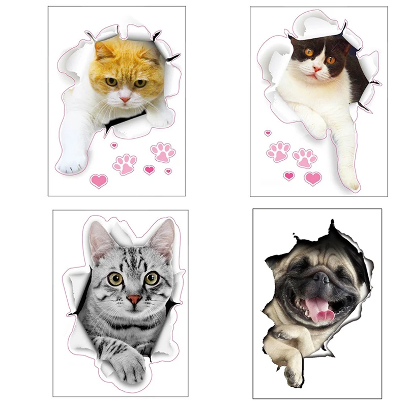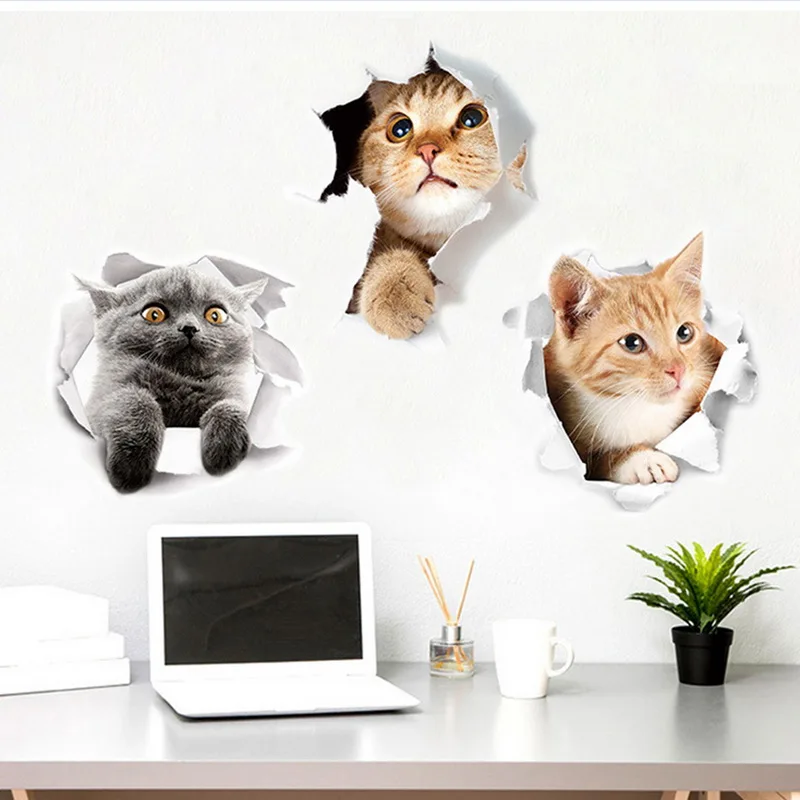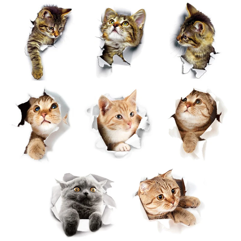 <Широко используется: 3D наклейки для кошек-это реалистичные наклейки, от двери до стены до комнаты до окна и даже крышка для унитаза.
