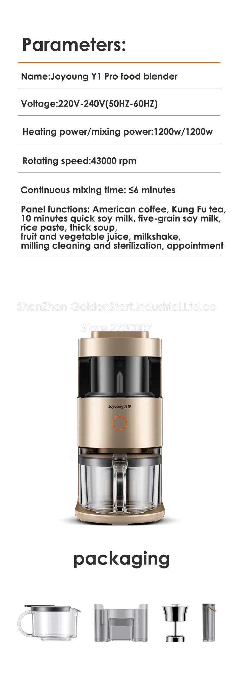 Joyoung Y1 PRO Миксер для пищевых продуктов автоматическая очистка многофункциональный настенный прибор для приготовления соевого молока 1200 мл 43000 об/мин Умная техника