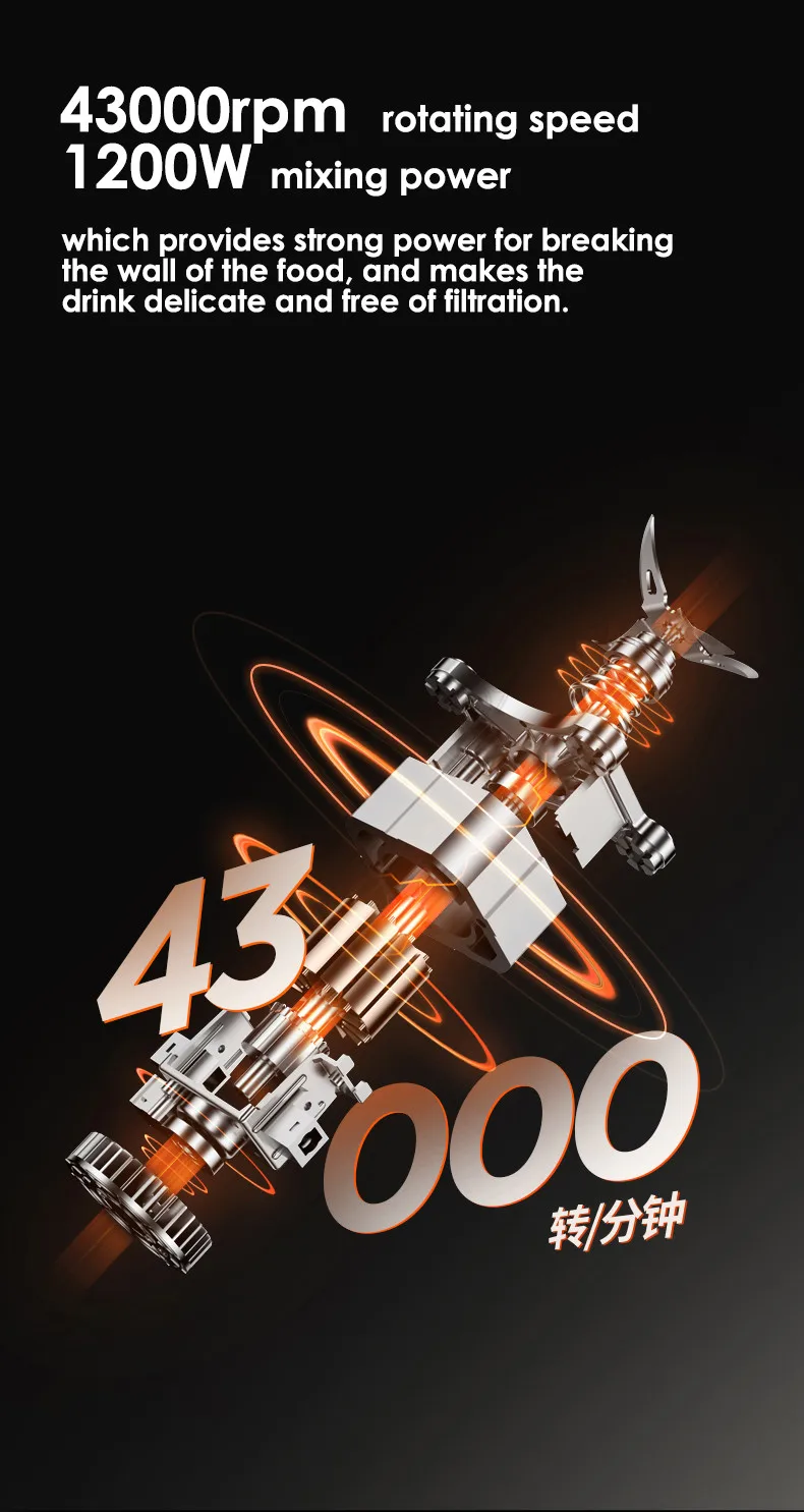 ● 43000 об/мин, разрывая стенку на высокой скорости, питательные вещества в ингредиентах выделяются, соевое молоко тонкое и без шлака;