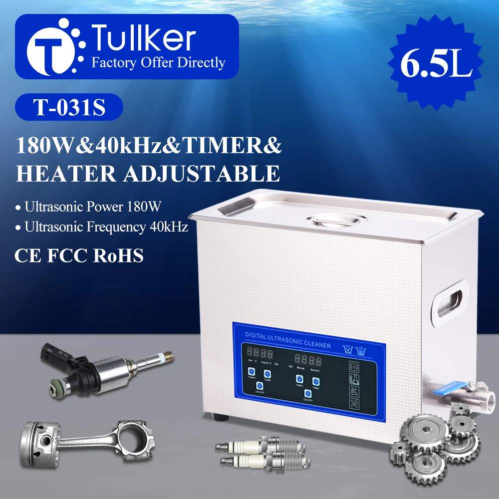 6.5L Digital Ultrasonic Cleaner Bath 180W Injector Tooth CD Lab Mold DPF Hardware Oil Rust Remove Ultra sonic Cleaning Washer 6L