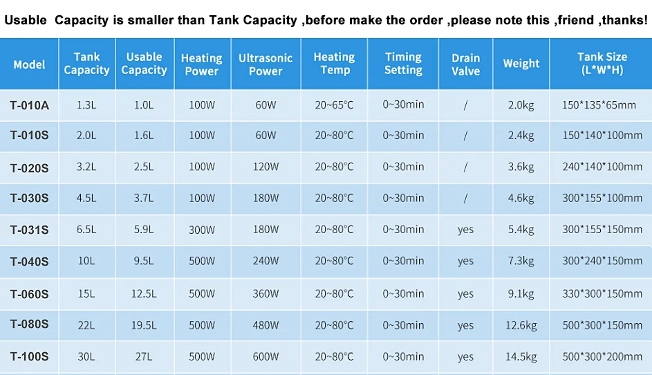 2.Usable capacity is smaller than tank capacity due to the rounded corners inside of the bath and thickening of the bottom of the bath,before make the order ,please note this ,friend ,thanks!