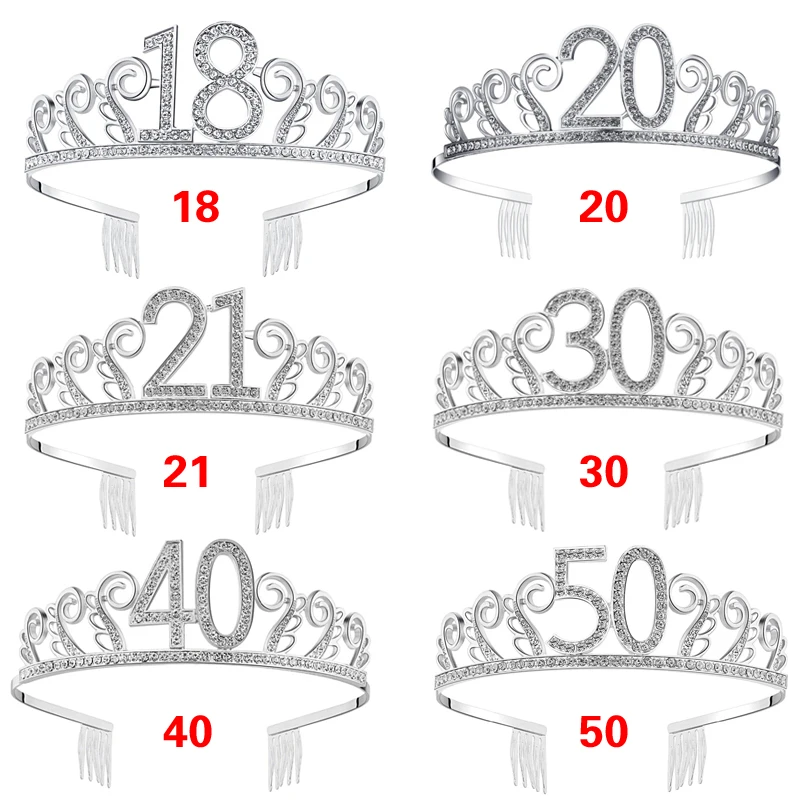 6 Styles Number Birthday Tiara Gorgeous Exquisite Elegant Rhinestone Princess Crown Silver Hair Jewelry Headband
