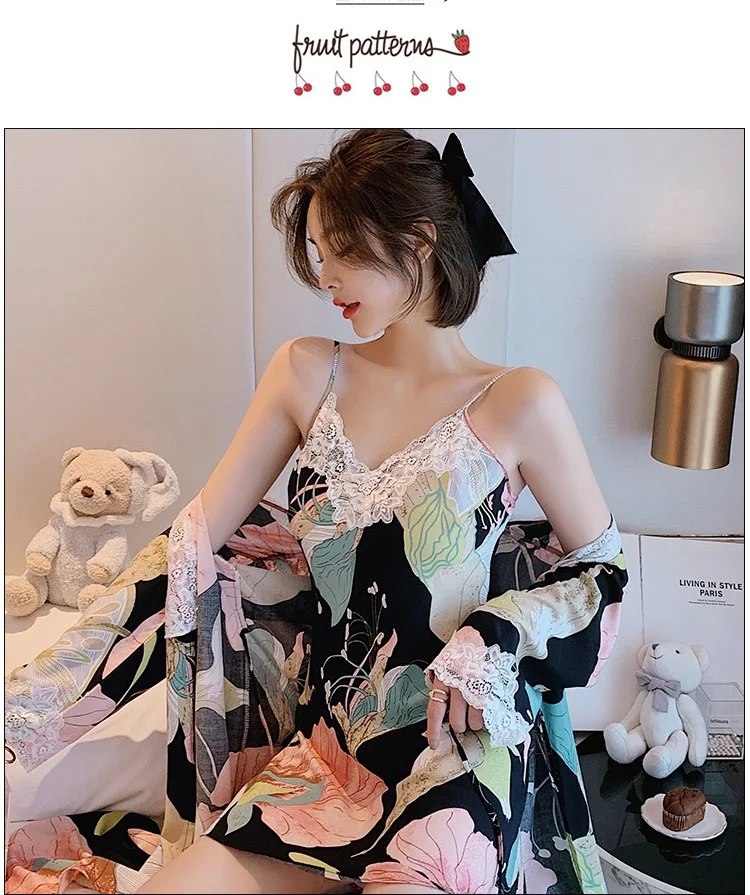 Посылка: 1 * Женская пижама; Платье на бретельках + 1 * Женский Пижамный Халат