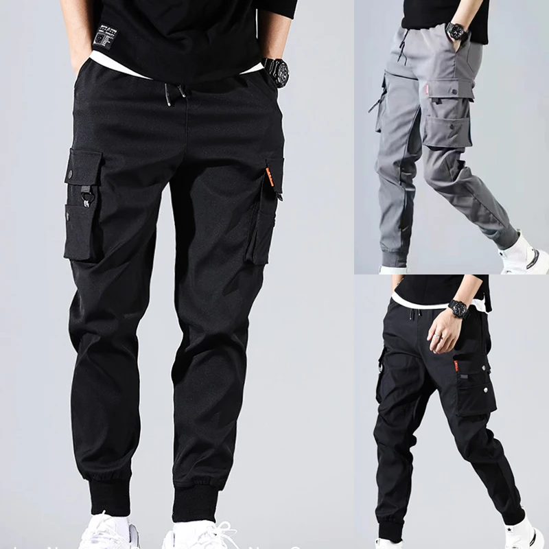 Мужские брюки-карго с боковыми карманами, шаровары в стиле хип-хоп, повседневные мужские брюки для бега, модная повседневная Уличная одежда, брюки-карандаш, одежда 2021
