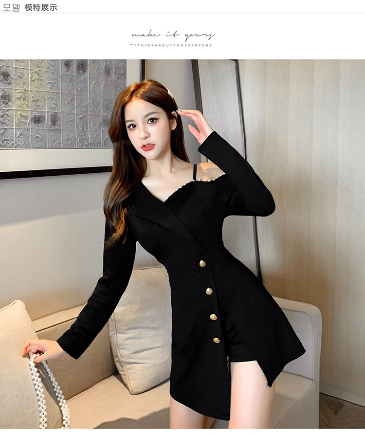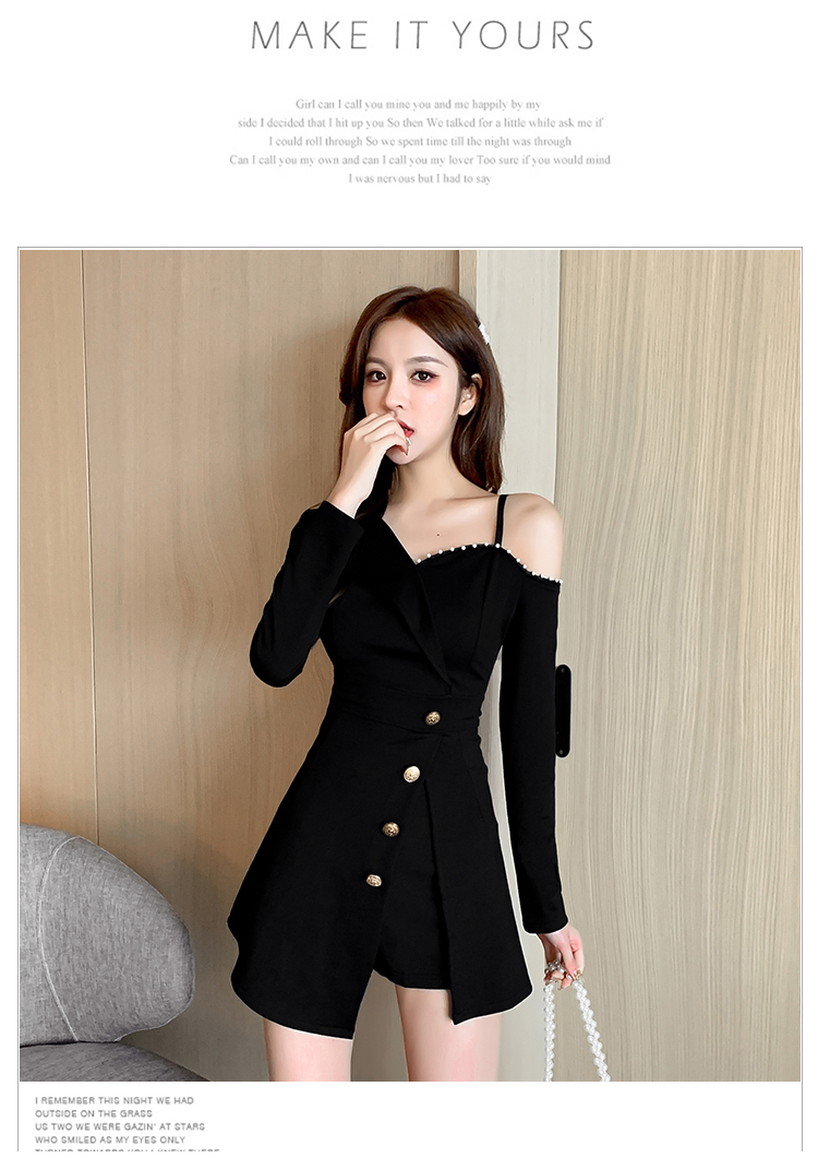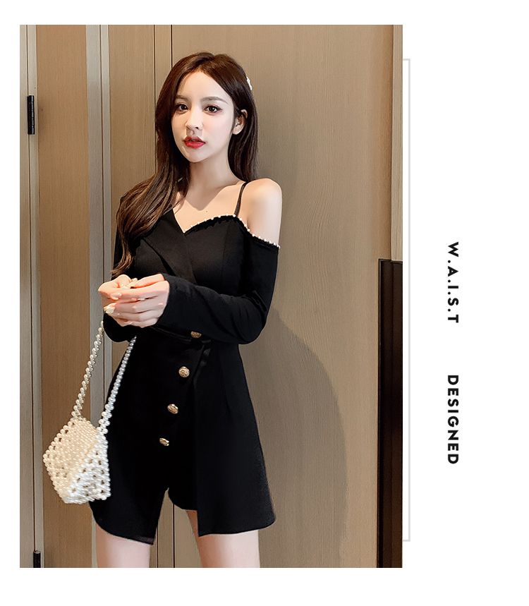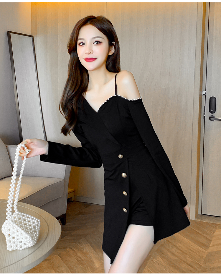 Модный темпераментный женский костюм, новинка 2021, весна и осень, без бретелек, необычное платье, черные шорты, западный стиль, костюм из двух предметов