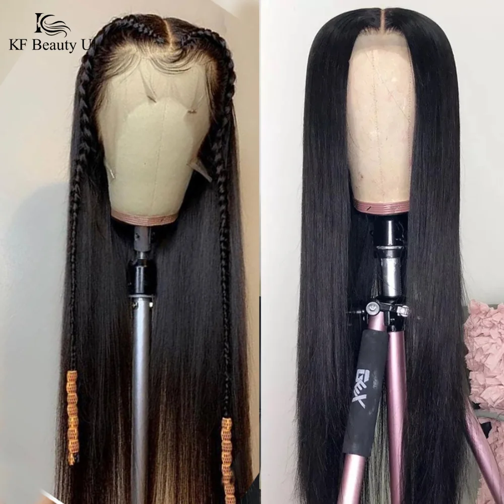 13X4 парик шнурка человеческих волос прямые малайзийские волосы парик прозрачный швейцарское кружево 13x1 часть синтетические волосы парик для черных Для женщин