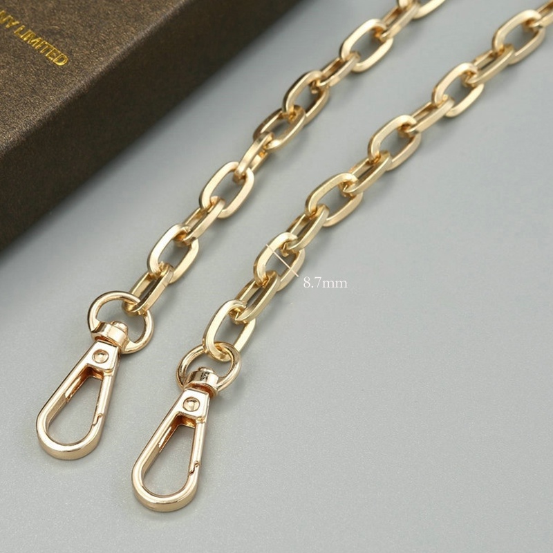 Используется для сумки, кошелька, сумки на ремне. На обоих концах имеется две металлические пряжки, которые позволяют прикрепить цепочку к сумке. Материал: металл Длина: 120 см Ширина: 8,7 мм Цвет: серебряный, черный, золотой, посылка включает в себя: 1x цепи