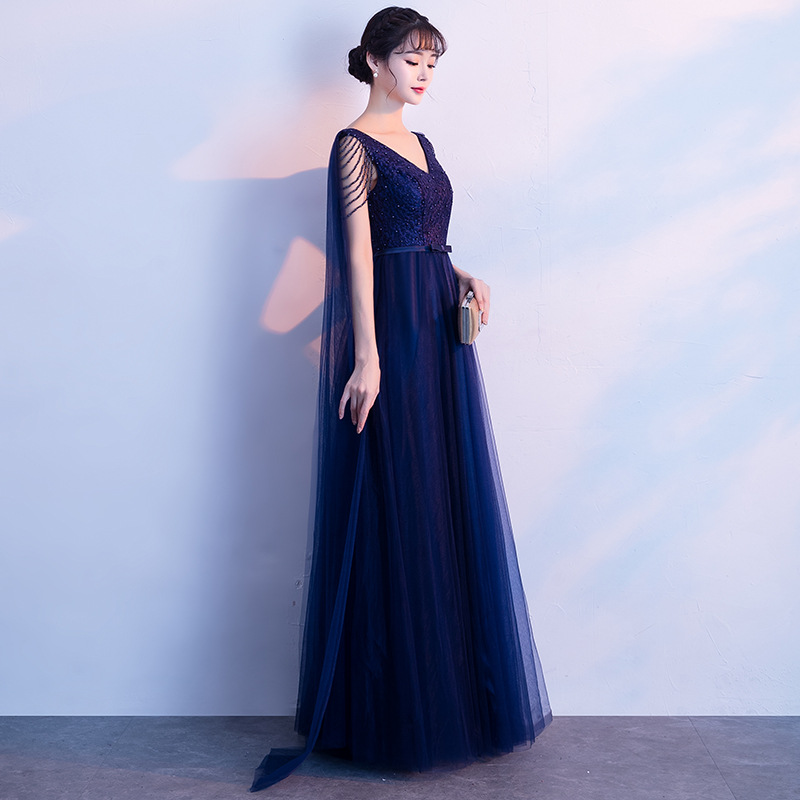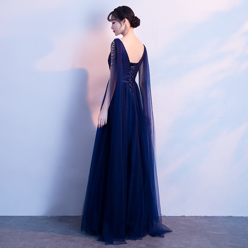 Женское вечернее платье с юбкой годе синее пышными рукавами официальное для