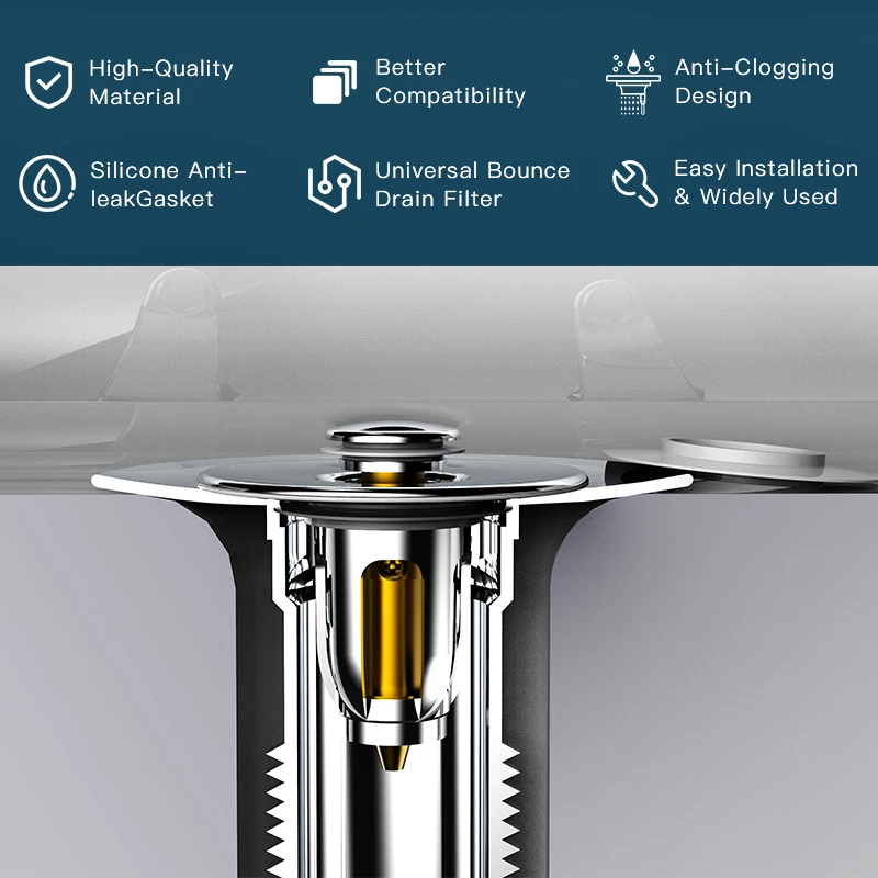 Подходит для 99% раковин для ванной комнаты с сливными отверстиями 1,02-1,96 дюйма. Независимо от того, какой умывальник, сливы для раковины в ванной или сливы для душевой ванны, он может работать со всеми.