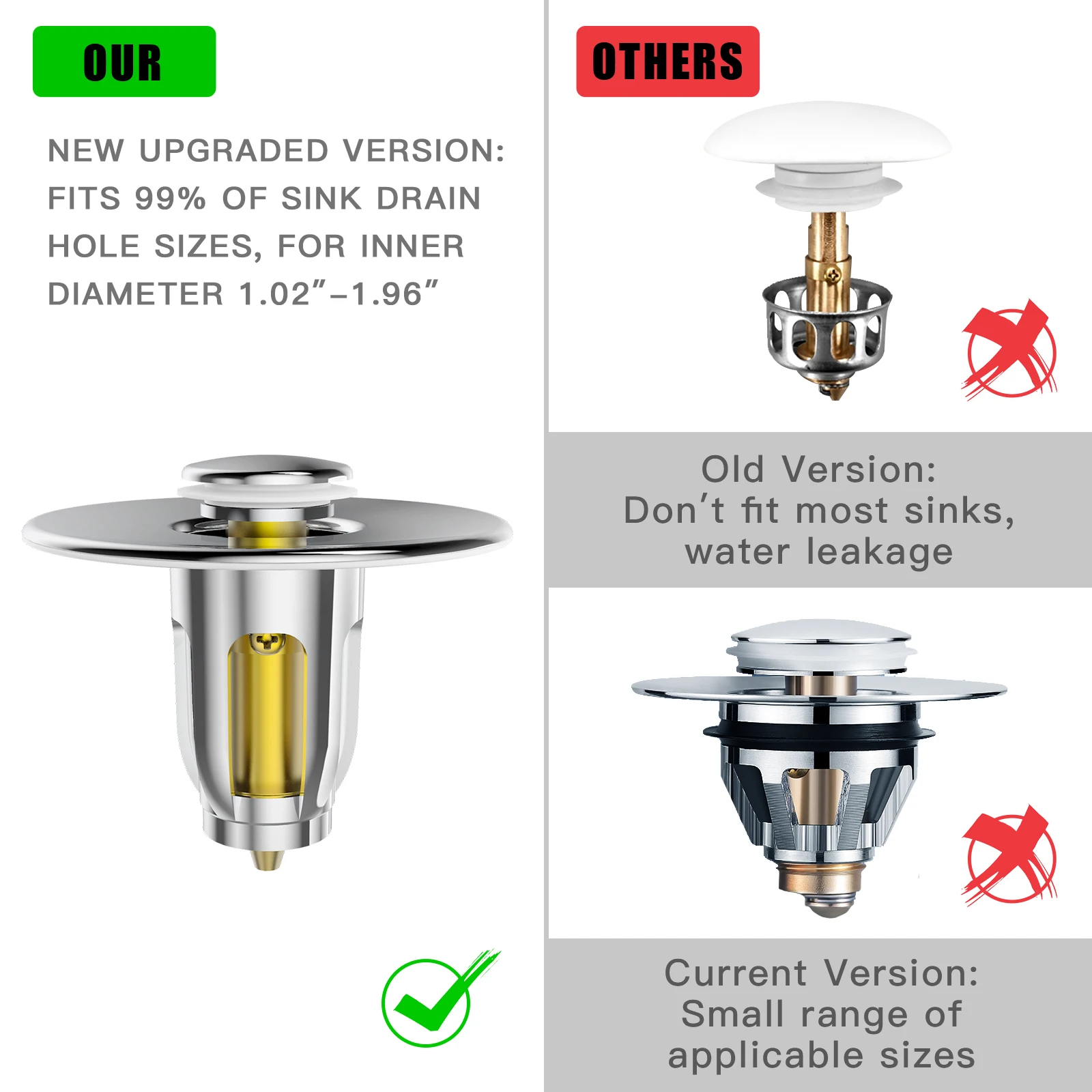 Kruggo®Всплывающая пробка для раковины ванной комнаты подходит 99% раковины ванной комнаты с Сливные отверстия 1,02-1,96 дюймов. Независимо от того, какой умывальник, сливы для раковины в ванной или сливы для душевой ванны, он может работать со всеми.