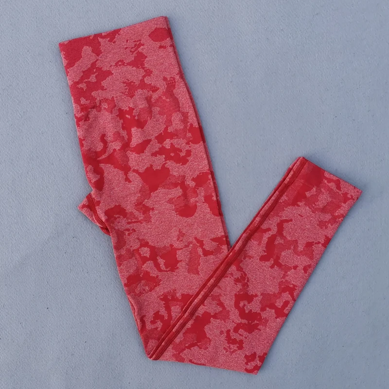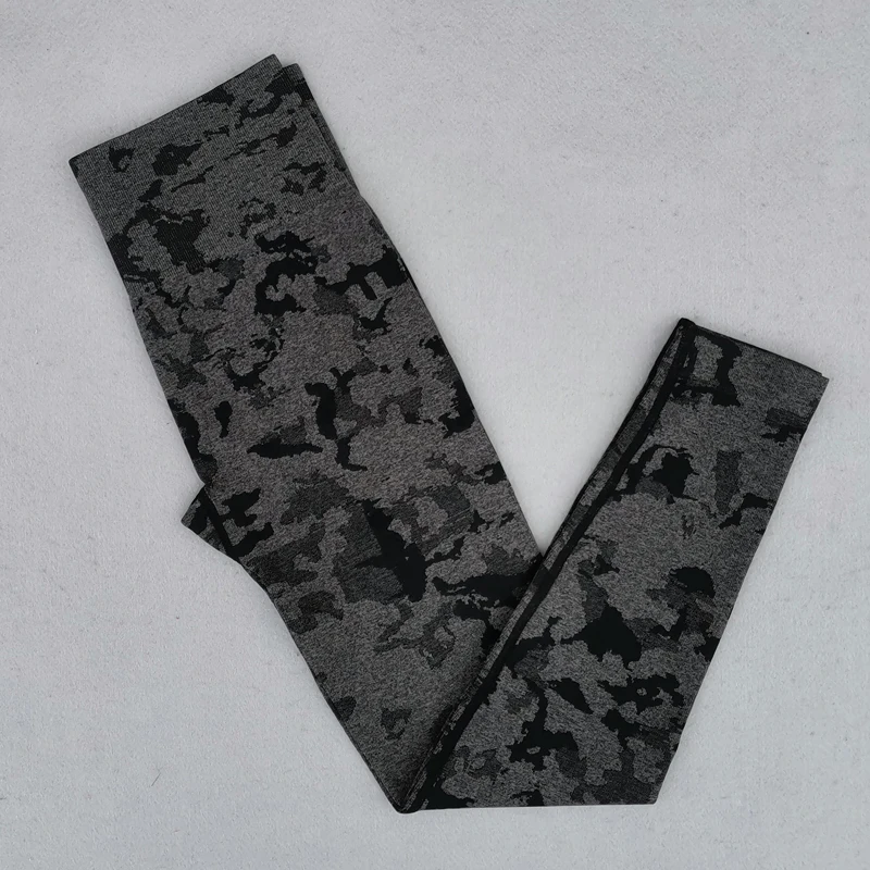 3. Высокая посадка, мягкий, без косточек пояс, контроль живота. Опытные камуфляжные бесшовные леггинсы.