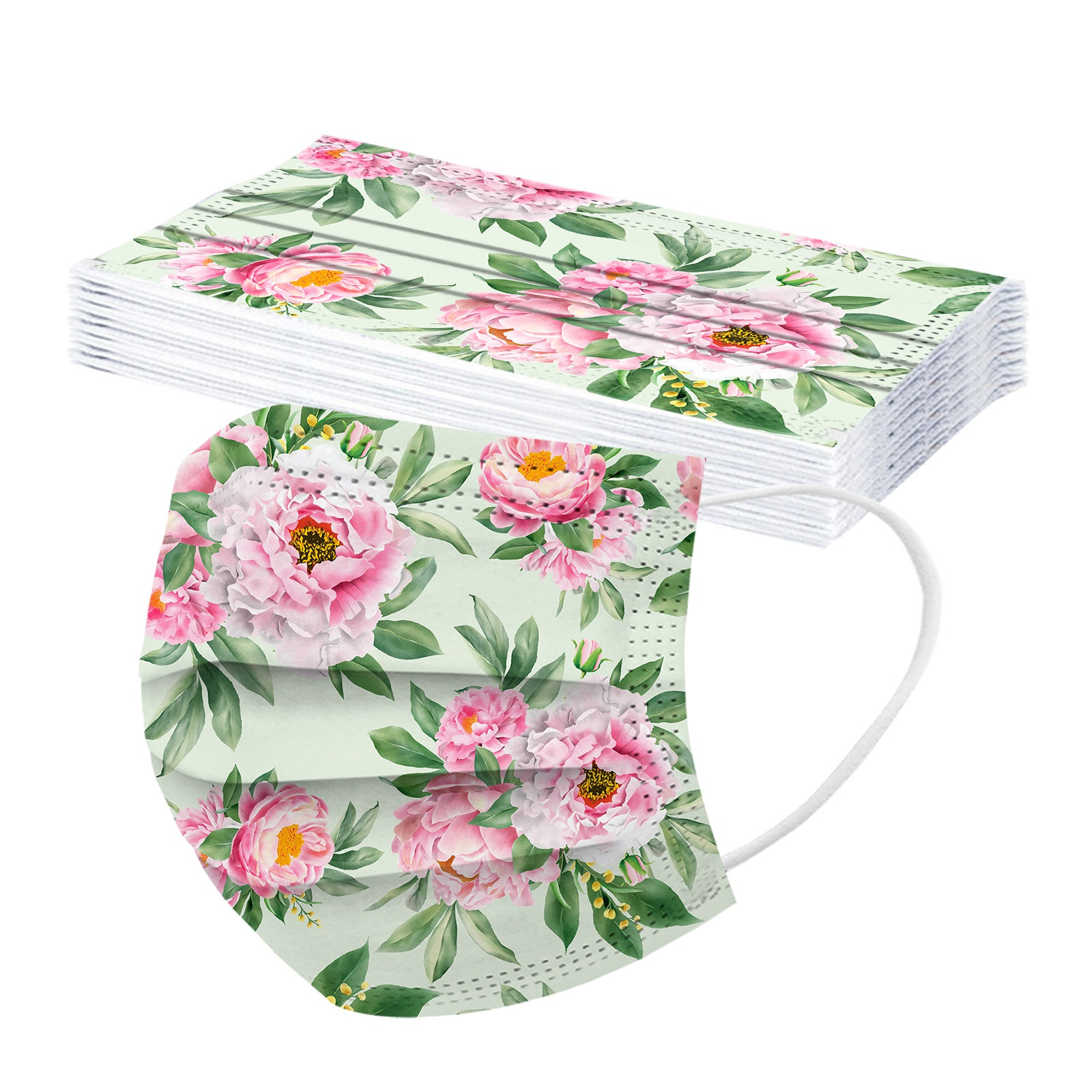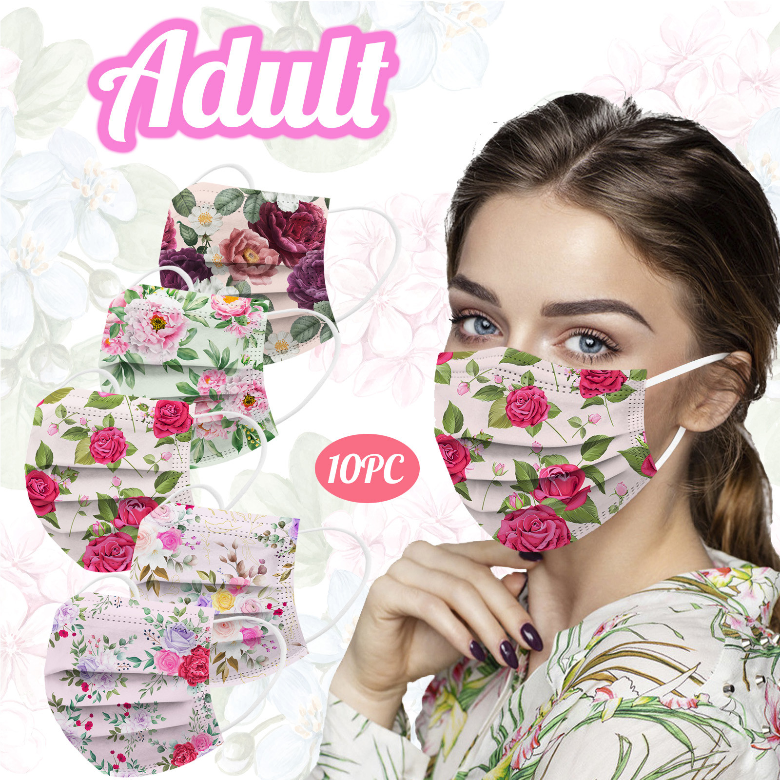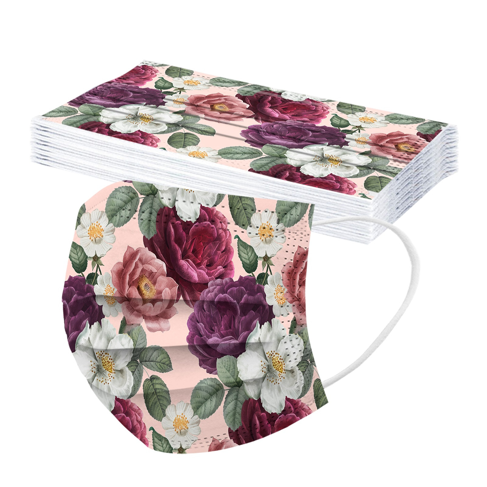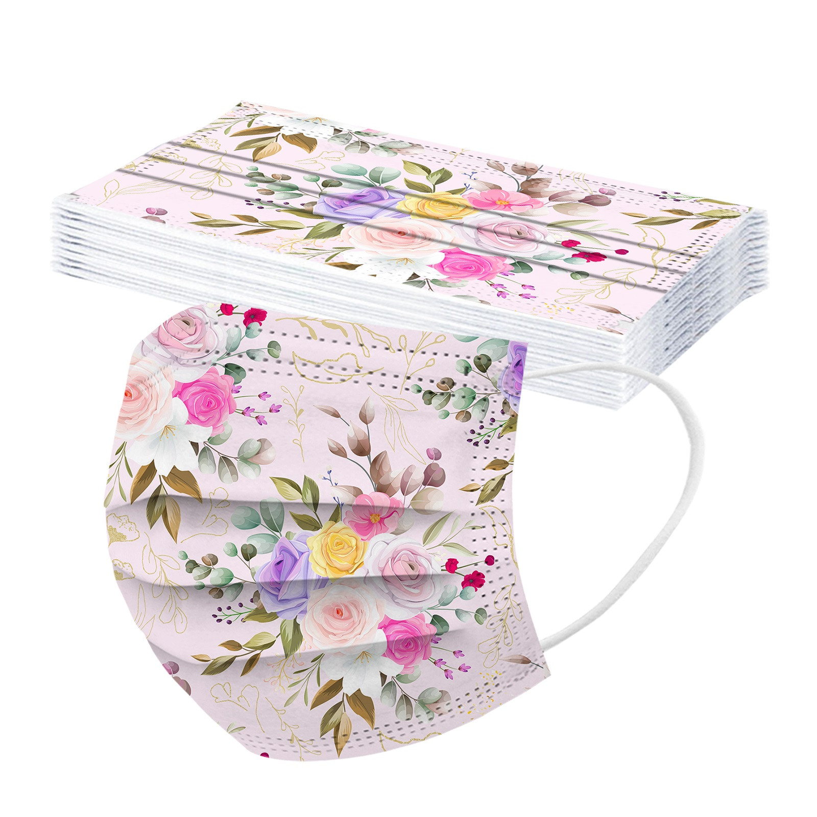 10pcs Disposable Unisex Floral Mask Disposable Soft Mask For Adults 3-Layer Mask