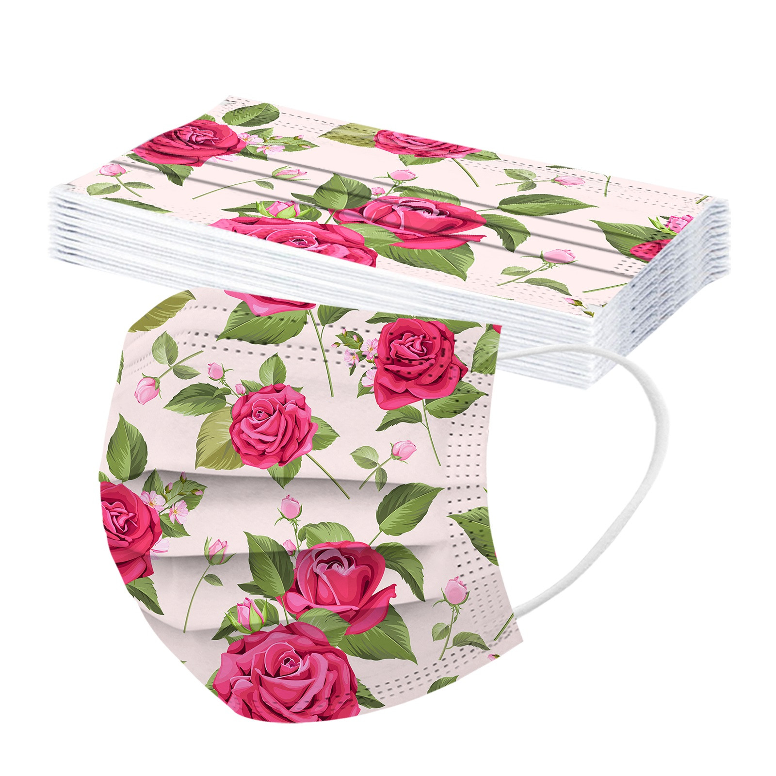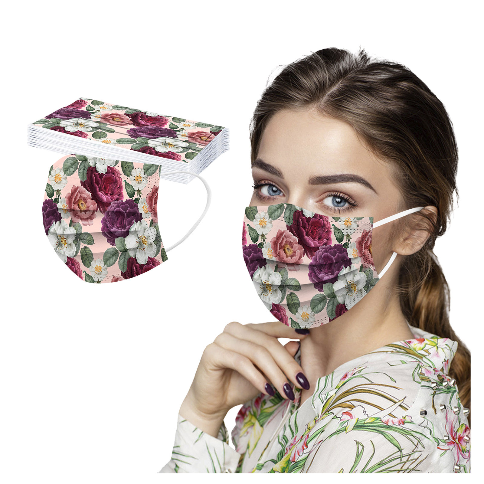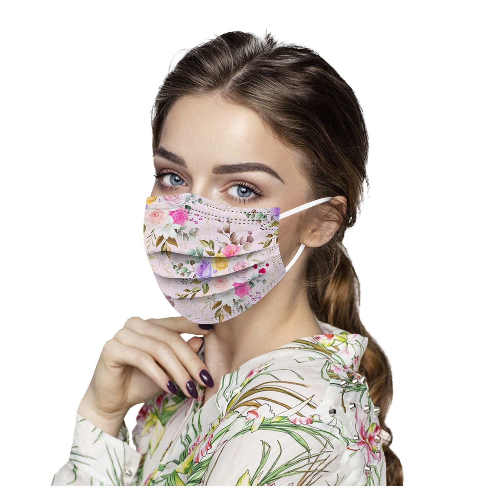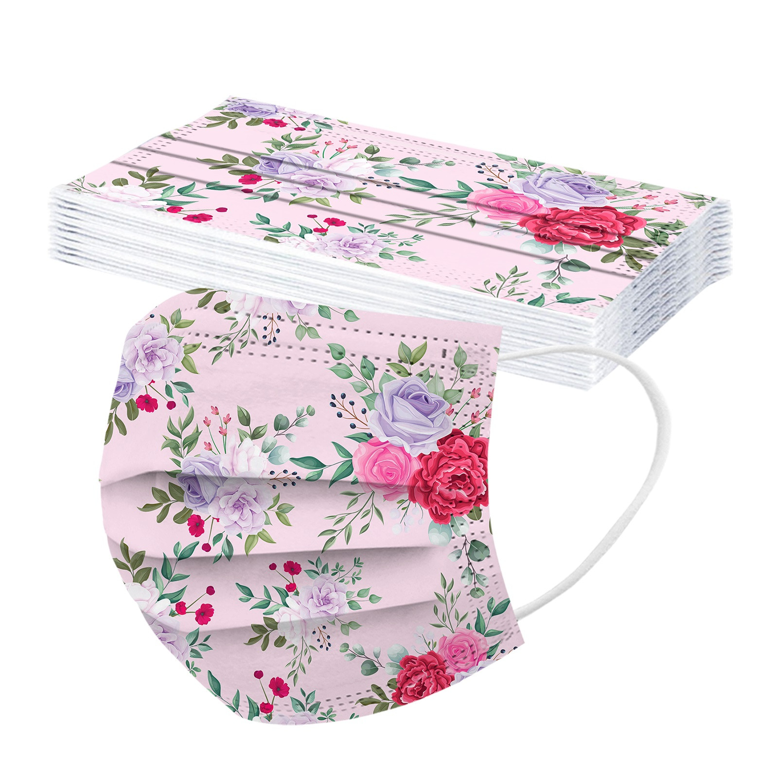 10pcs Disposable Unisex Floral Mask Disposable Soft Mask For Adults 3-Layer Mask