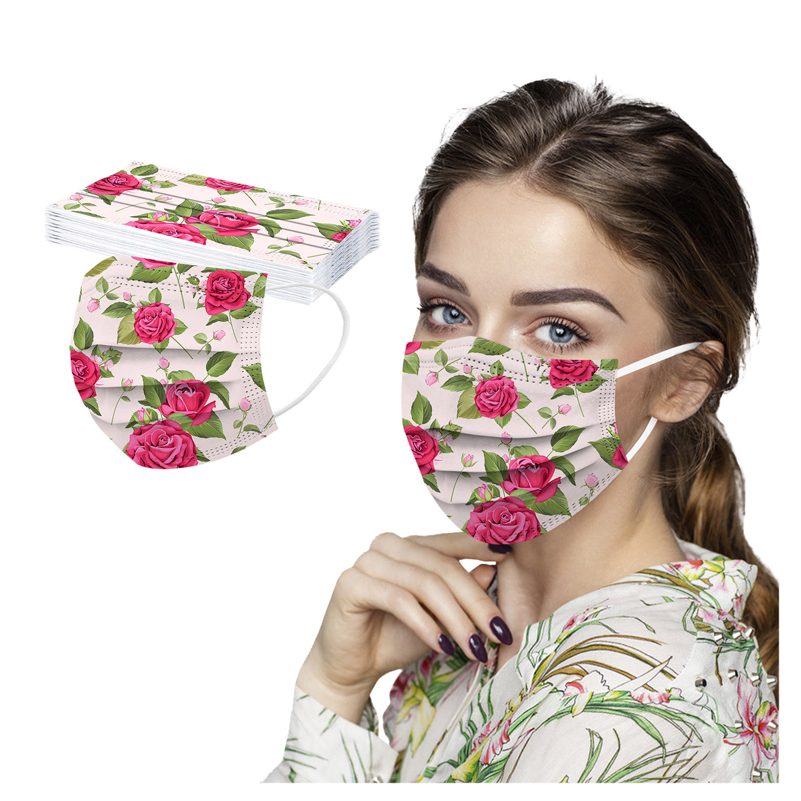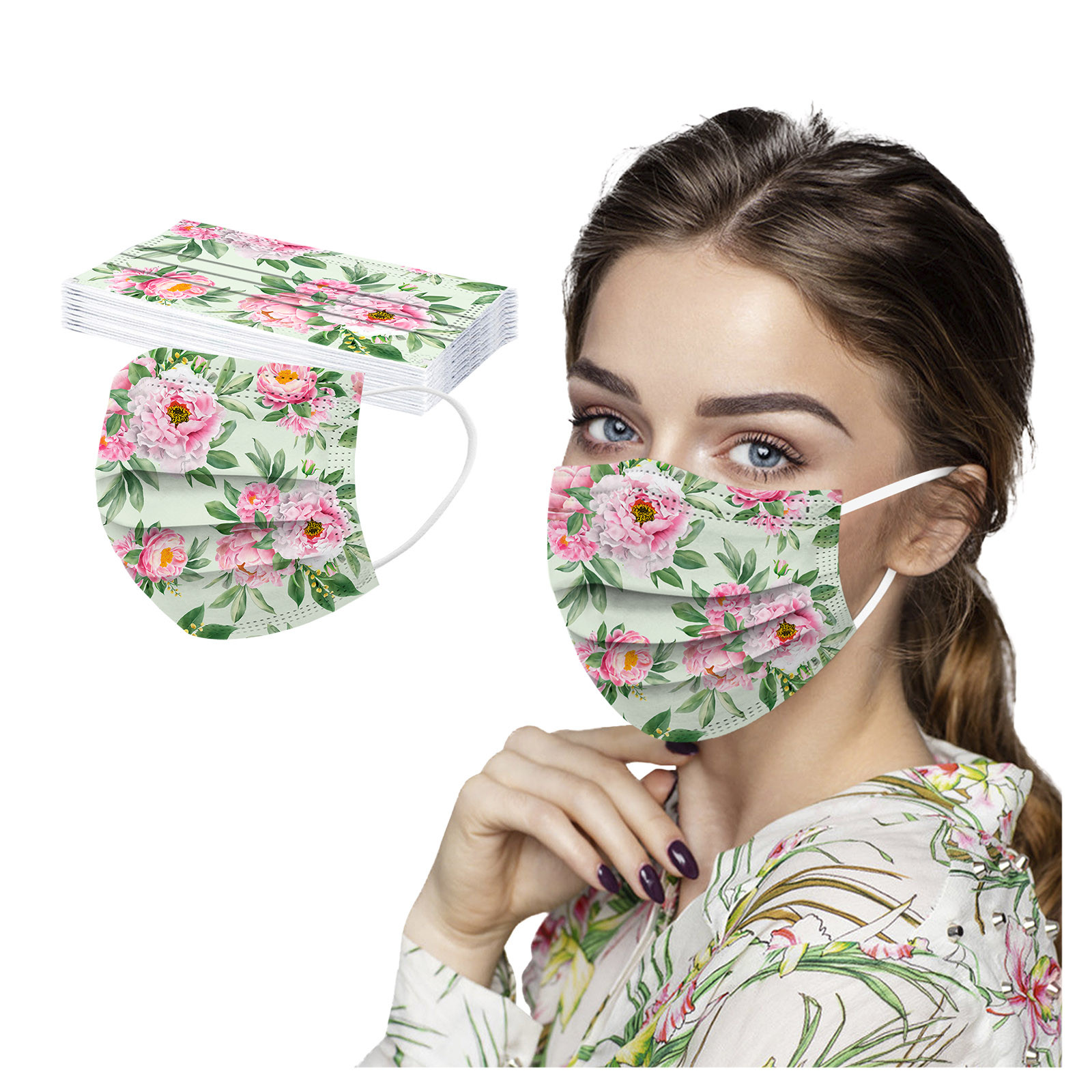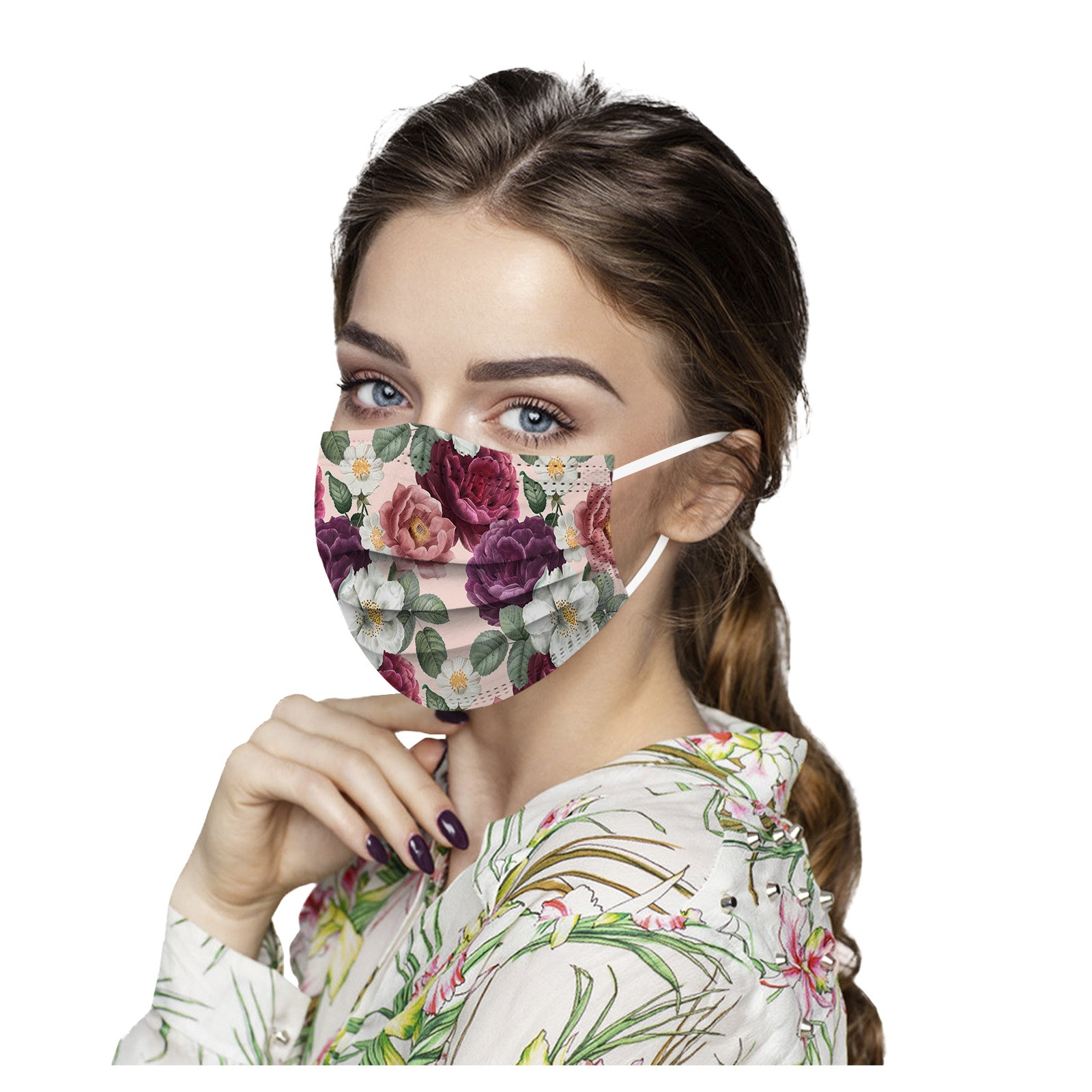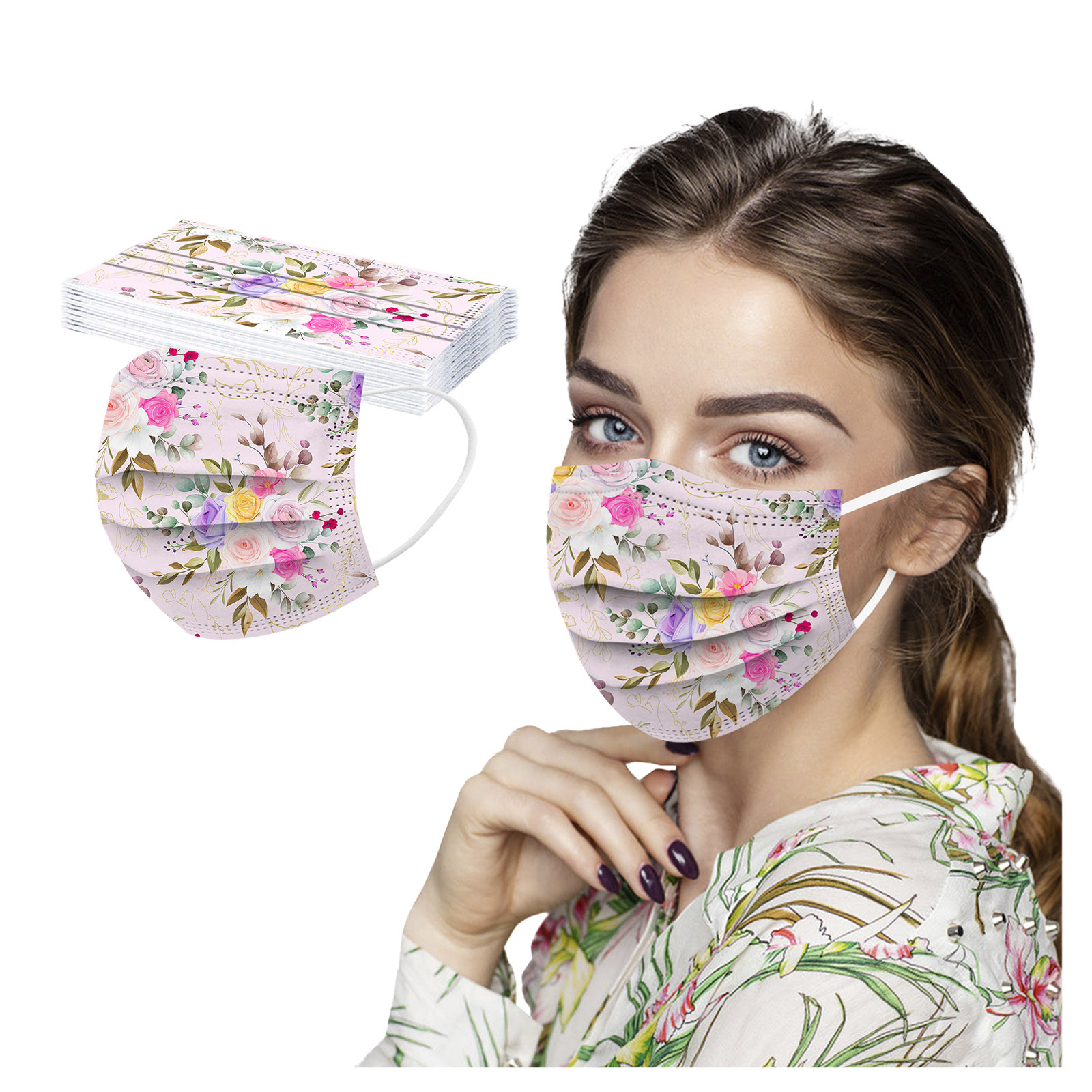 10pcs Disposable Unisex Floral Mask Disposable Soft Mask For Adults 3-Layer Mask