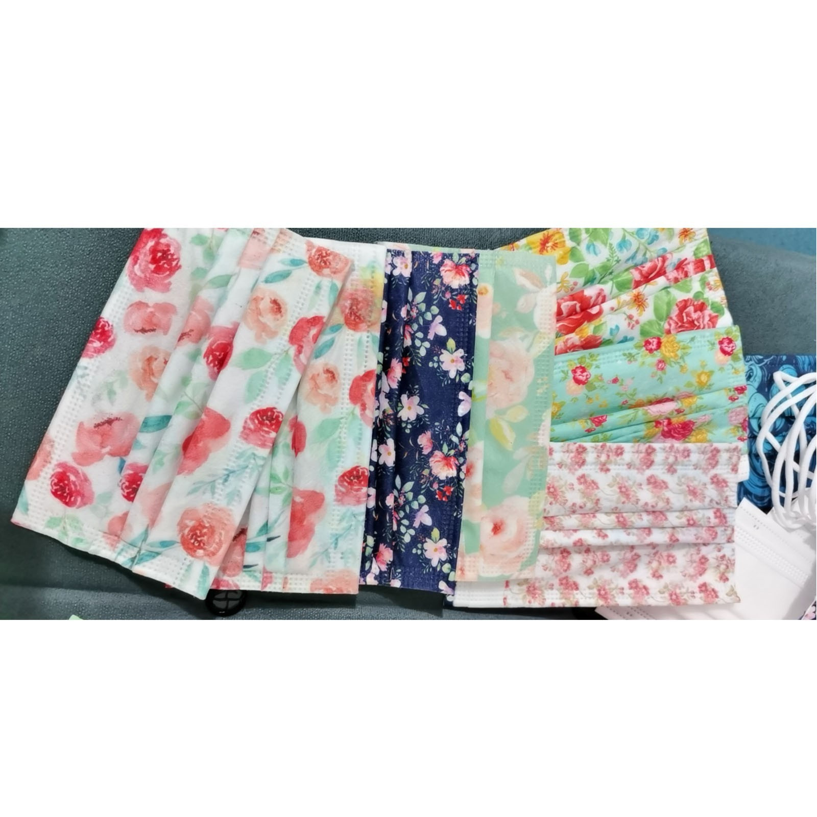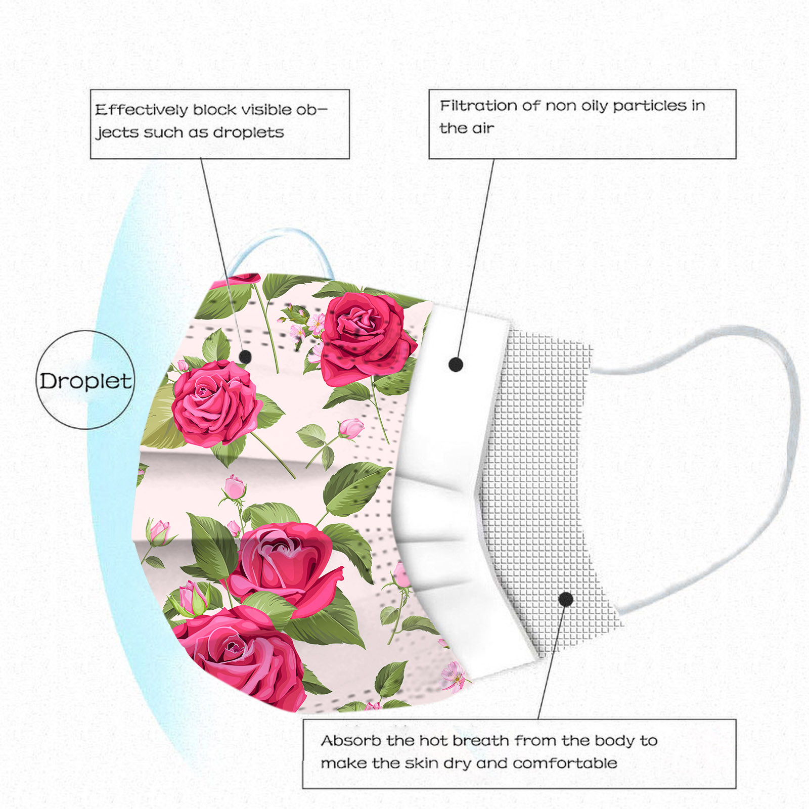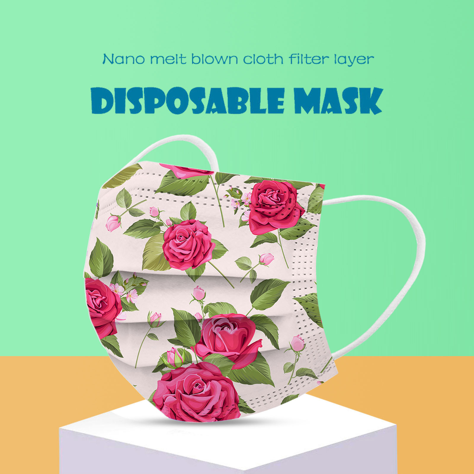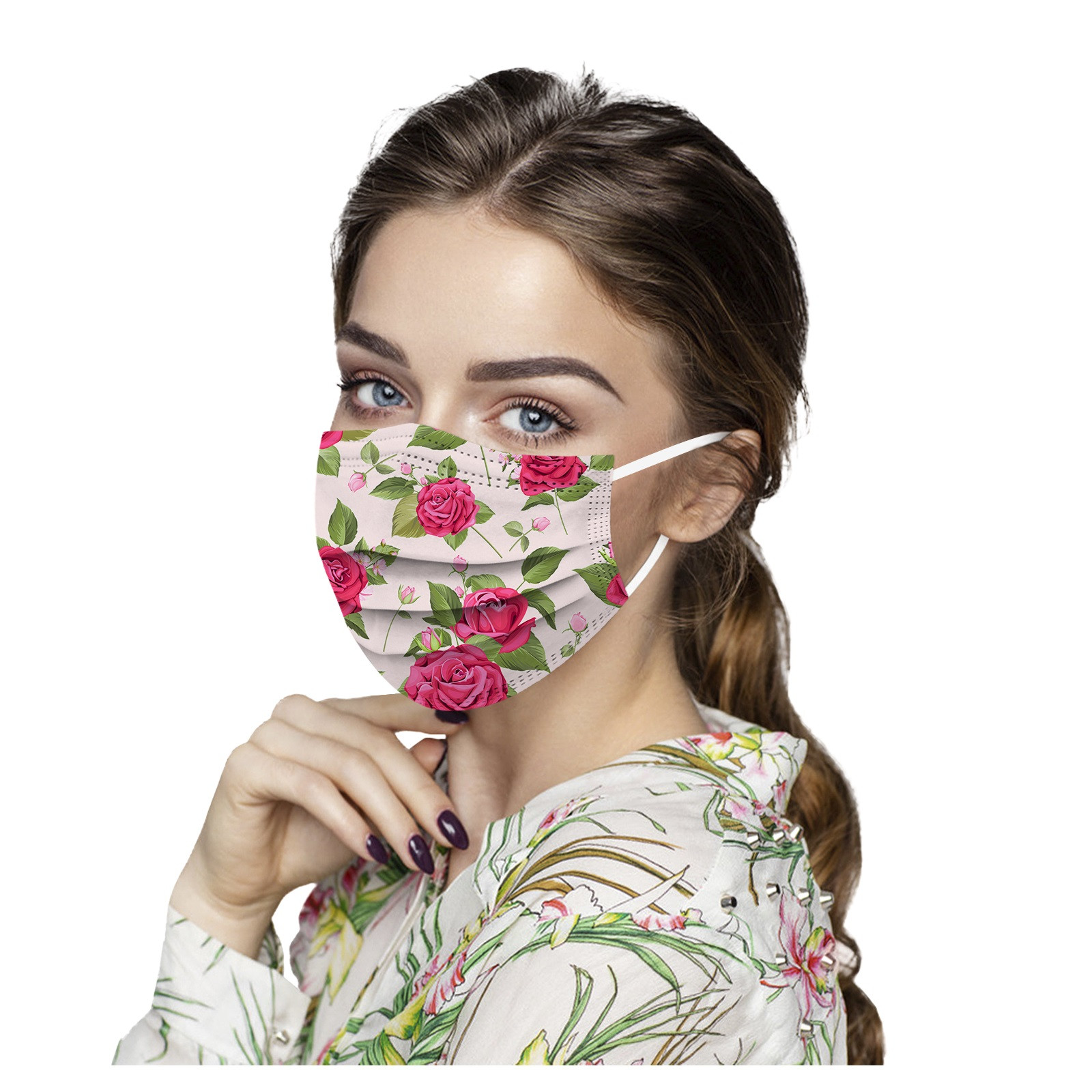 10pcs Disposable Unisex Floral Mask Disposable Soft Mask For Adults 3-Layer Mask