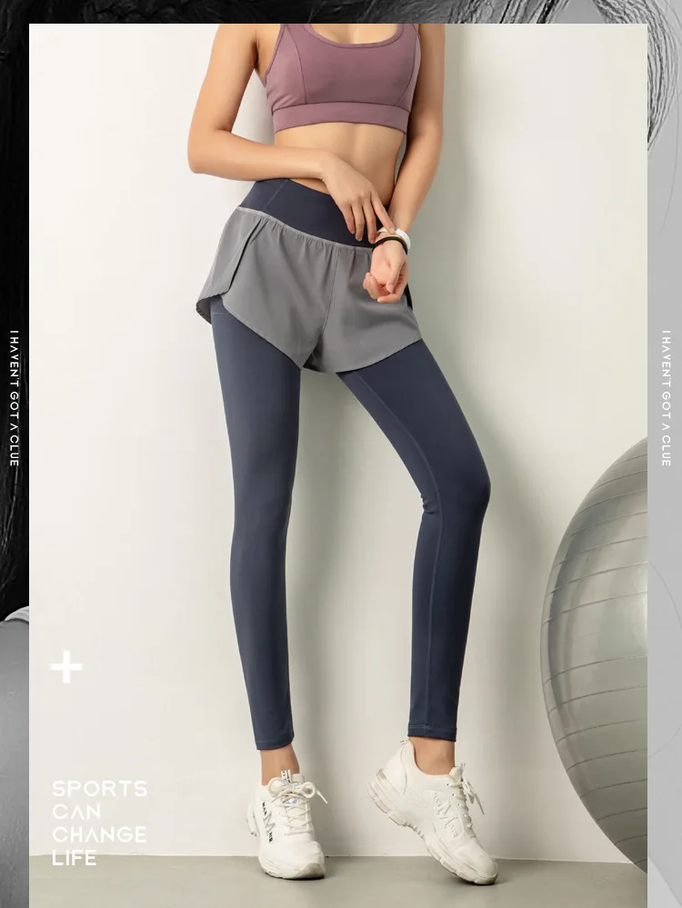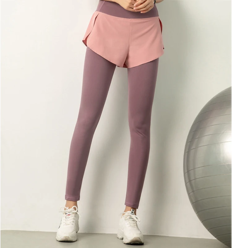 Штаны для йоги, имитация двух частей, бесшовные леггинсы