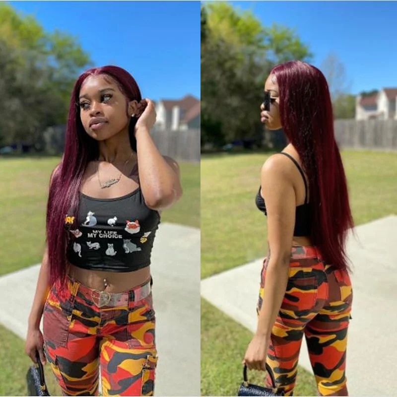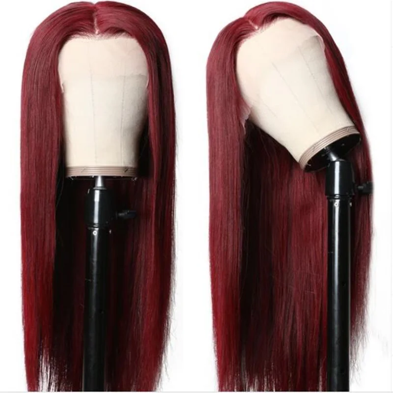 Pinshair Straight Lace Front Human Hair Wig For Women Long Human Hair Color 99J Burgundy Brazilian Bone Straight Lace Front Wigs
