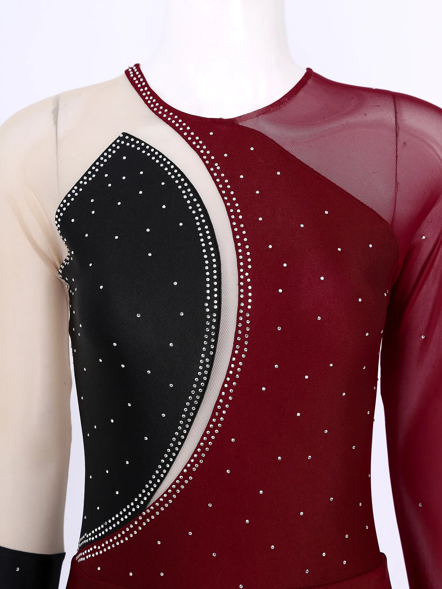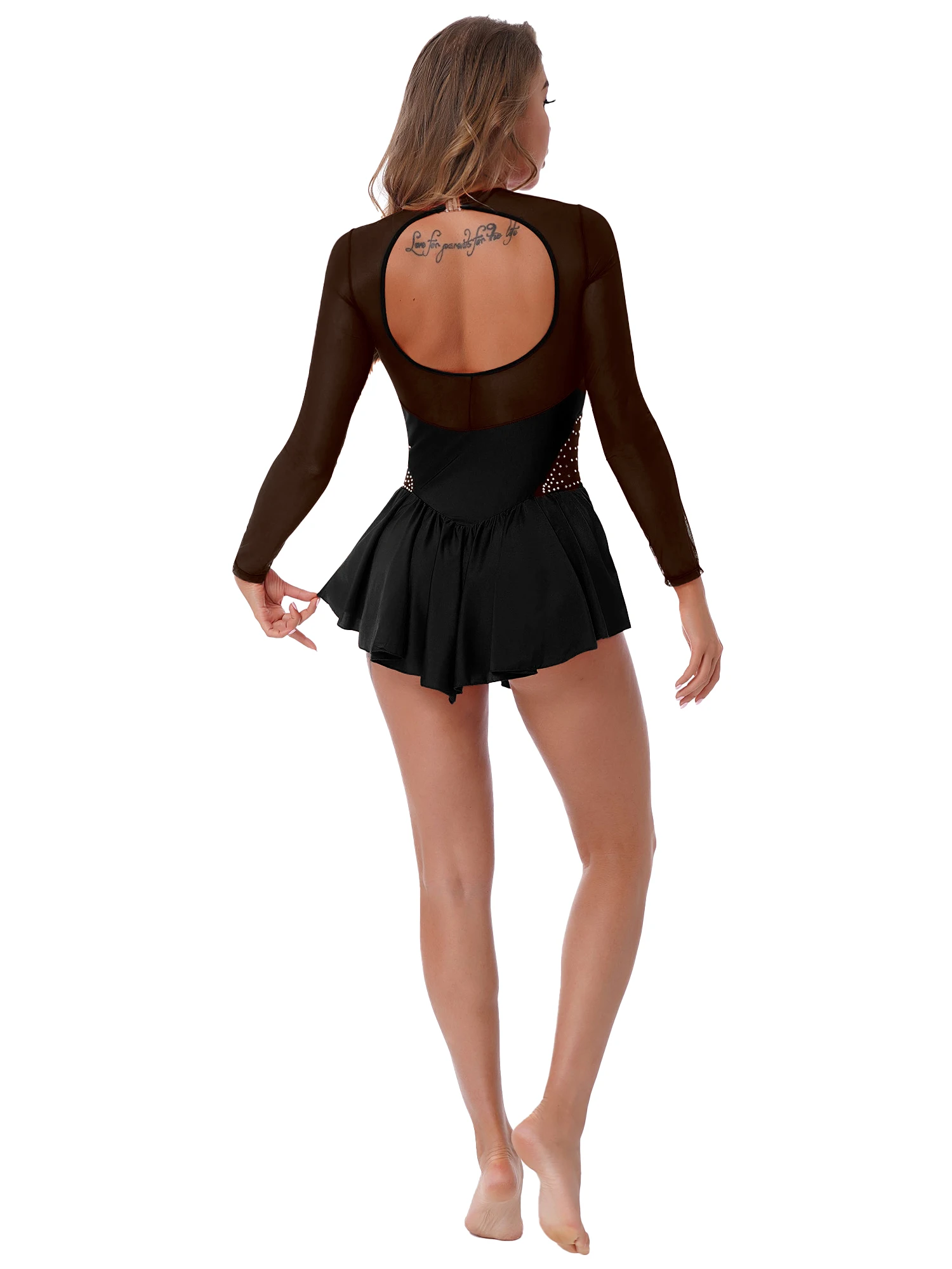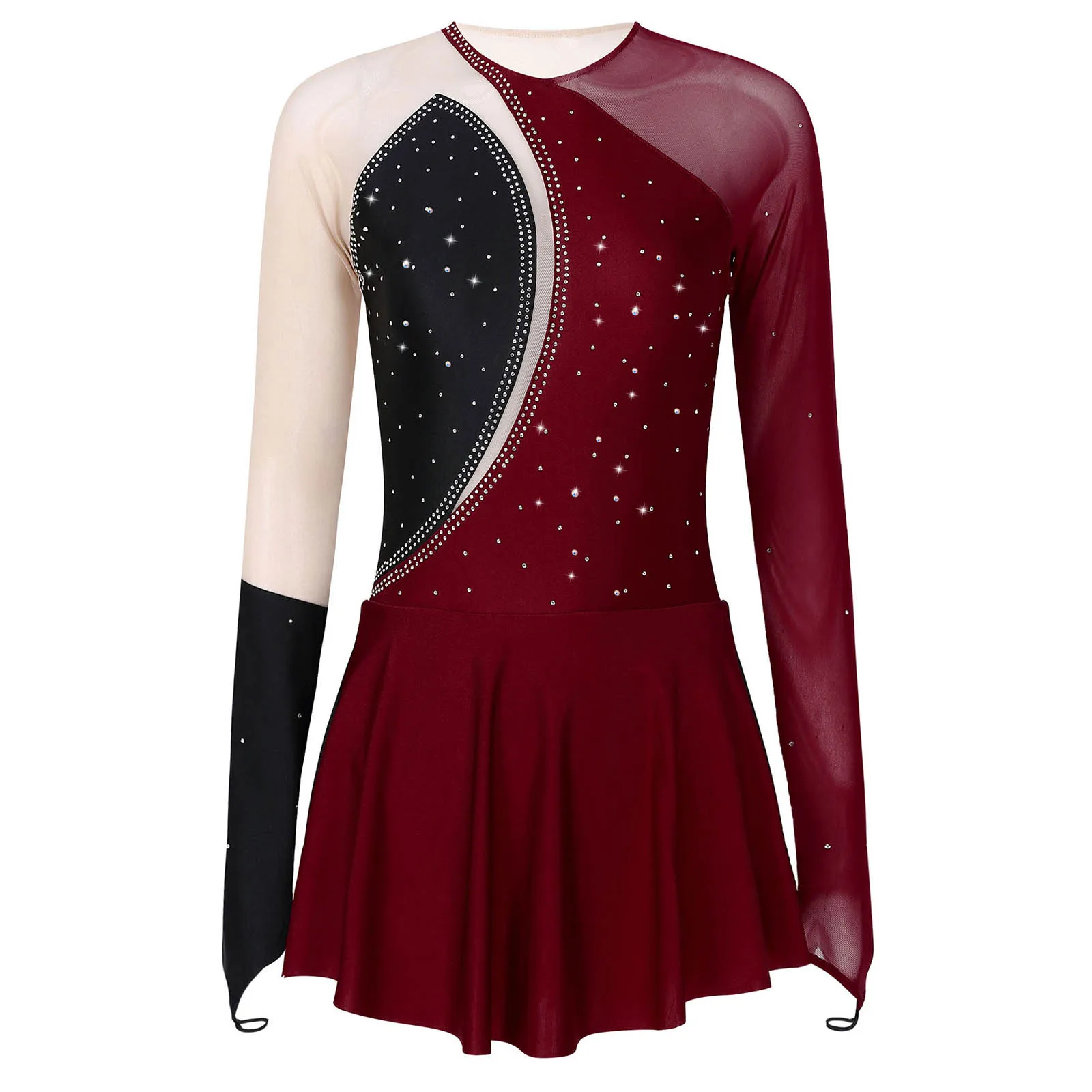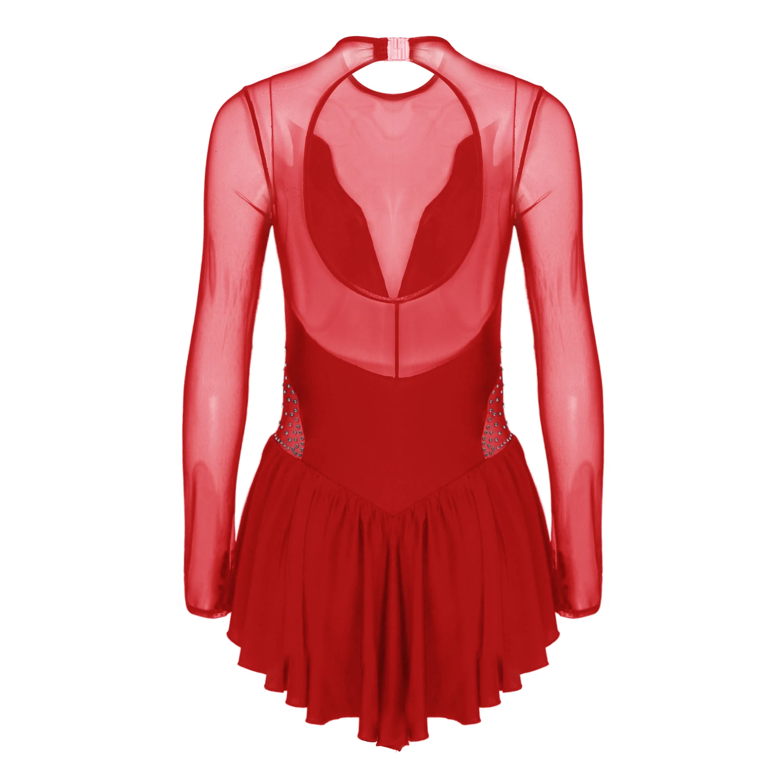 Женское Сетчатое платье для танцев с длинными рукавами и бретелькой через шею, стразы, Фигурное катание, Художественный гимнастический тренировочный костюм, трико, платья.