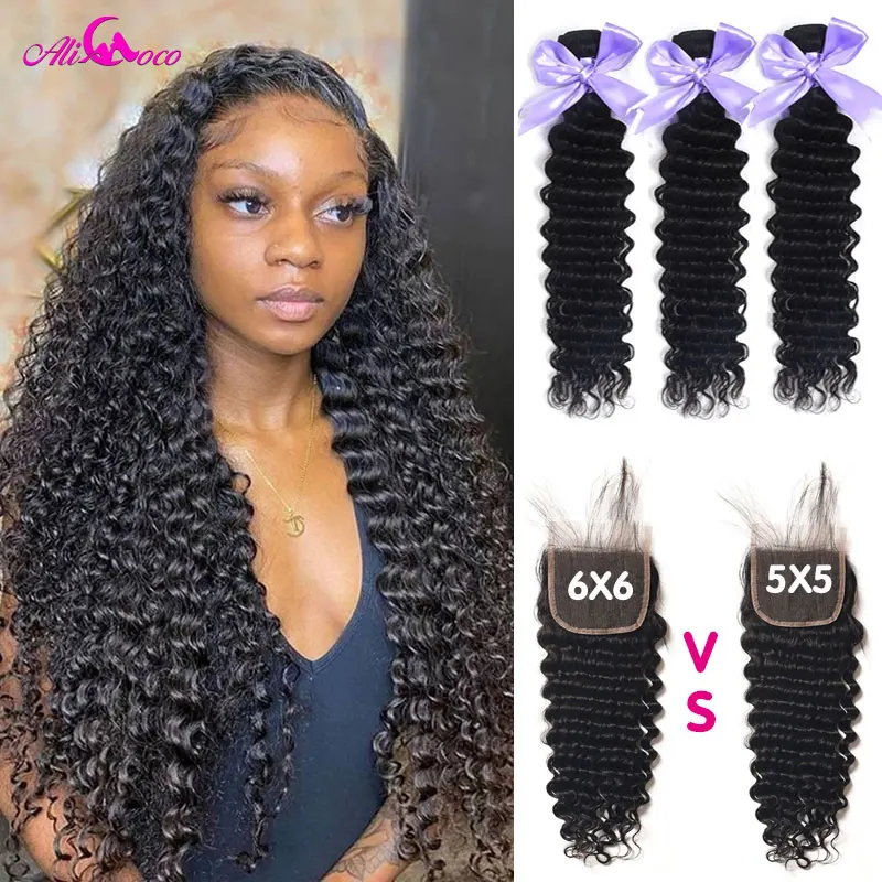 Глубокая волна 5x5 закрытие пряди глубокая волна человеческие волосы пряди с 5x5 закрытие 28 30 дюймов 6x6 закрытие с глубопряди
