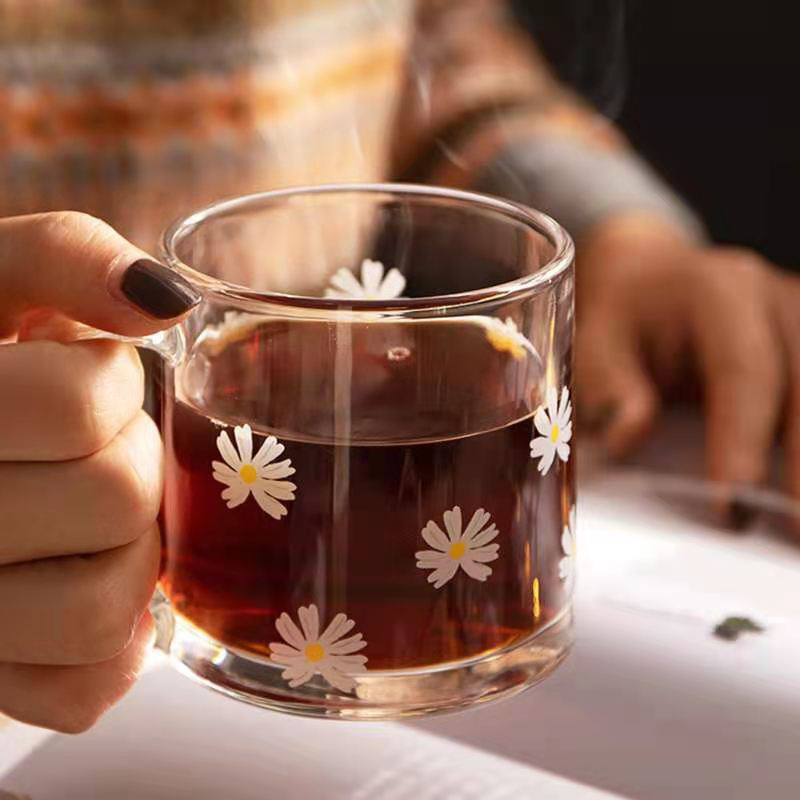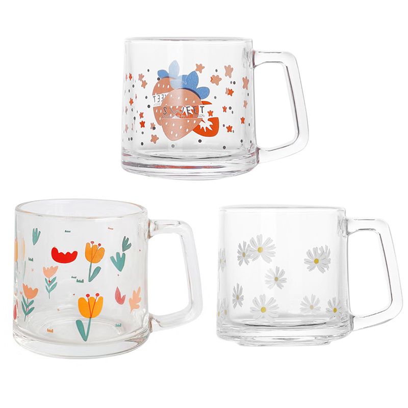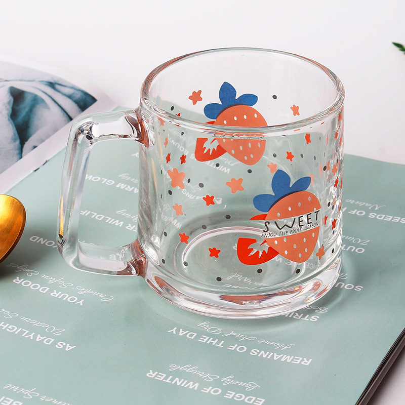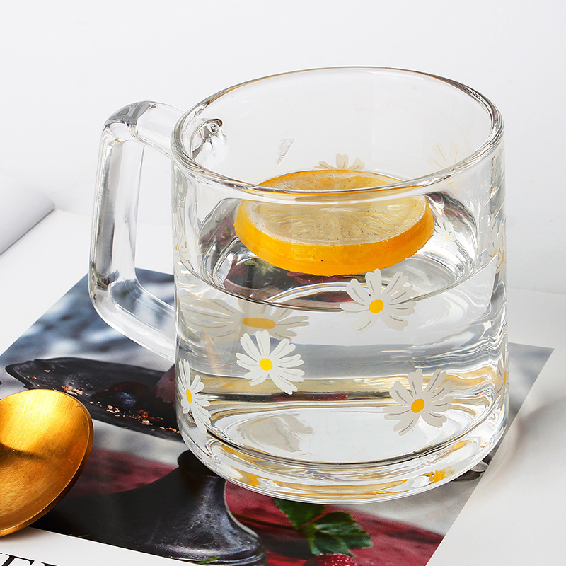 Ins Стильные стеклянные чашки с принтом, кофейная кружка с ручкой, термостойкие кружки для завтрака, молочные кружки, кофейные чашки, стеклянная кружка, чашка для воды, посуда для напитков