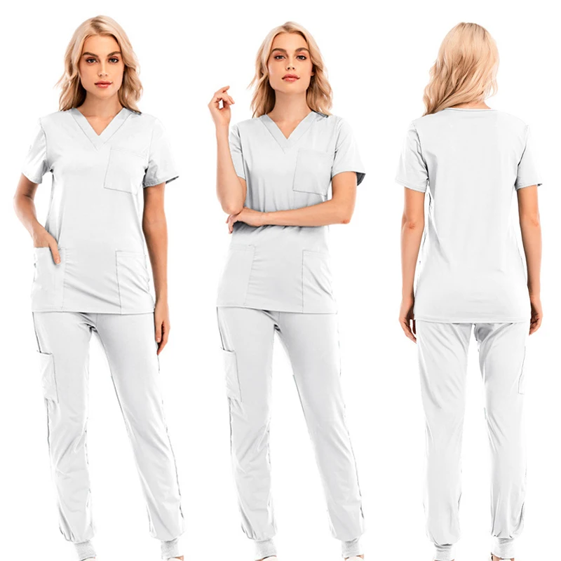 XS-2XL, 6 цветов, v-образный вырез, короткий рукав, карман для кормления, рабочий топ, брюки, Одноцветный светильник, дышащий мягкий женский костюм