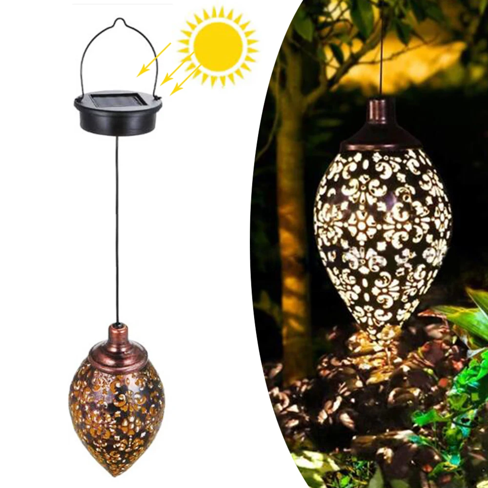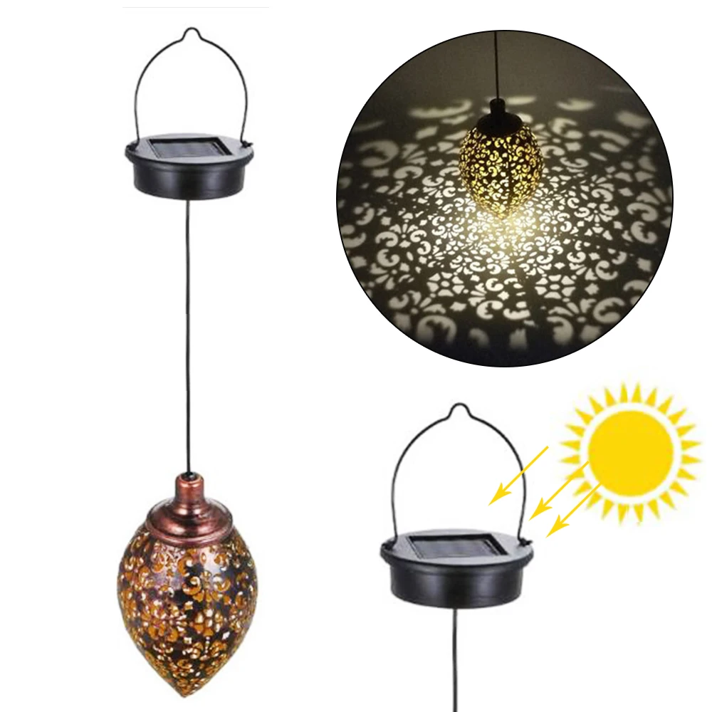 Дизайн с нежным полым абажуром, Подвесная лампа на солнечных батареях имеет винтажный стиль и красивый светильник с узором,