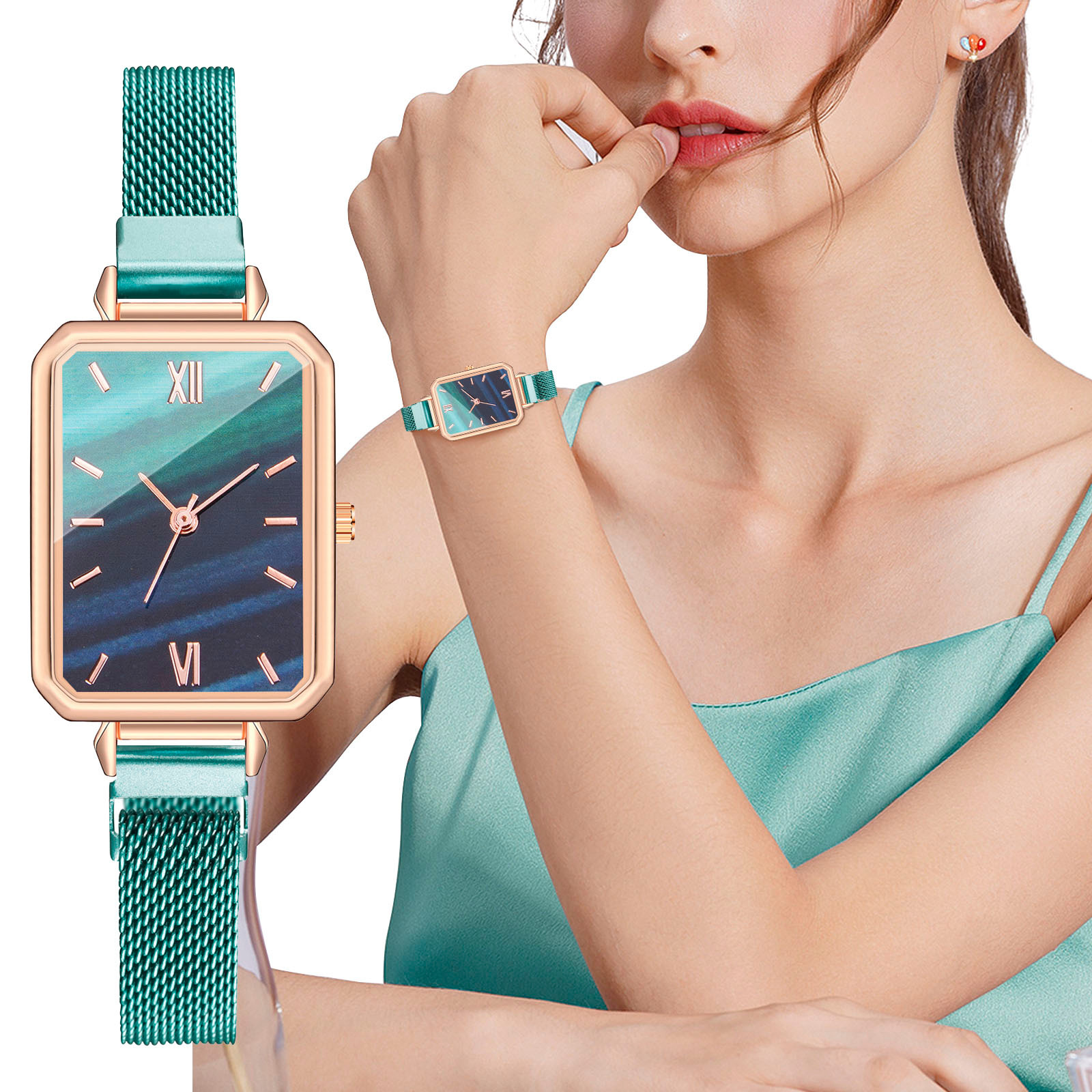 Часы наручные женские кварцевые с квадратным циферблатом модные повседневные