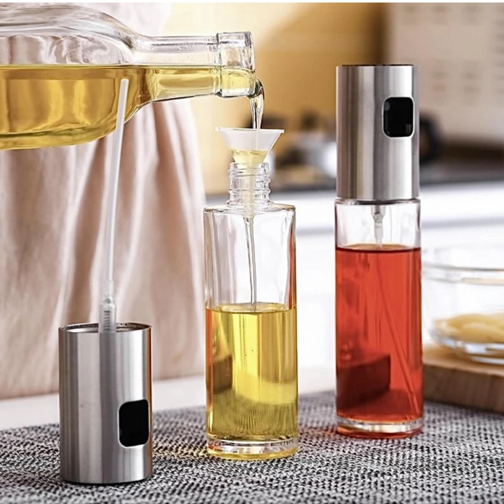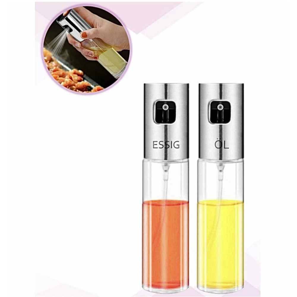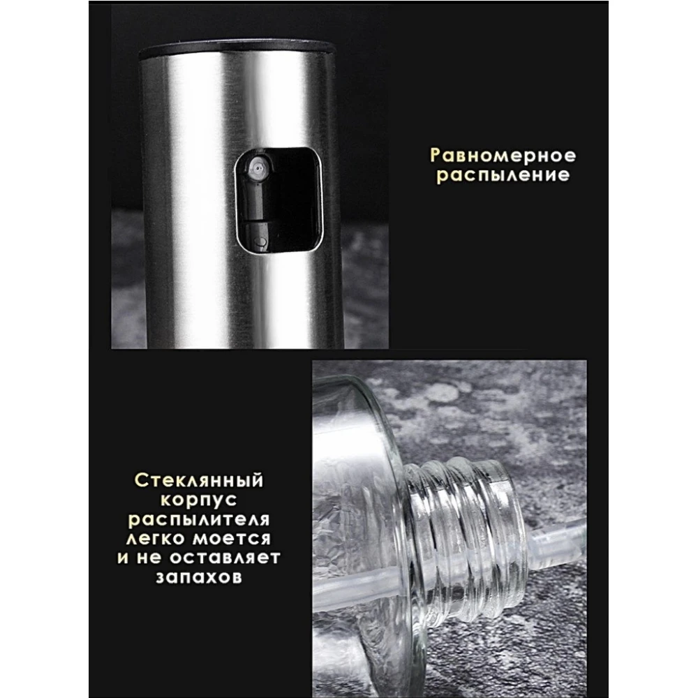Набор из 2-х распылителей для масла и уксуса - незаменимый помощник на кухне. Распылитель-дозатор позволяет равномерно распределить подсолнечное масло по всей поверхности сковороды при выпечке, жарке, приготовлении на гриле и т.д. Внимание! Стильная бутылка с дозатором идеально впишется в интерьер, а экономичный расход растительного или оливкового масла порадует практичную хозяйку. Наличие минимального количества масла в еде придется по душе любителям здорового и правильного питания. Во флакон добавляют зубчики чеснока, ароматные травы и специи для более пикантного вкуса блюд. Бутылка-распылитель не впитывает запахи и легко моется, в отличие от пластиковых аналогов. Размеры: 17,8*4 см. Объем 100 мл. Вес 210 г. Материал: стекло, нержавеющая сталь. Станьте обладателем диспенсера для масла, уксуса, вина и сделайте свои блюда еще более вкусными и полезными.
