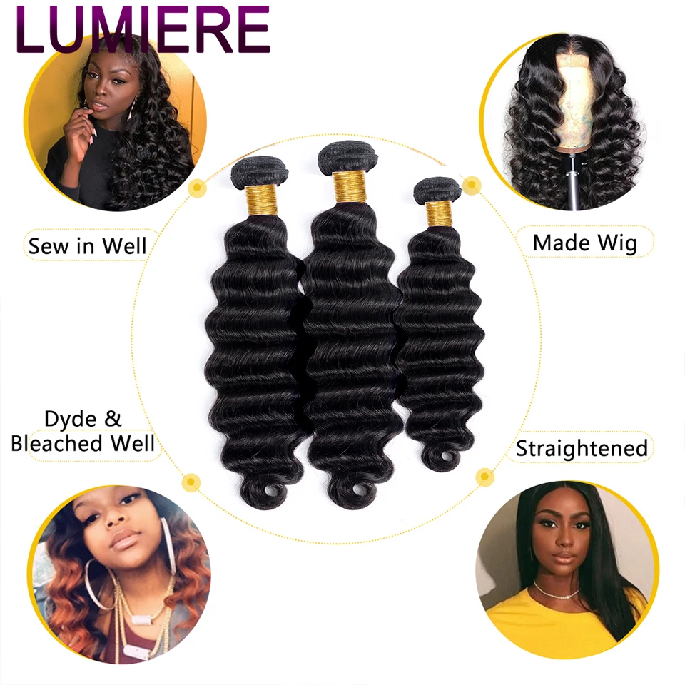 Lumiere волосы 1 3 4 пряди 30 32 40 дюймов Свободные глубокие волнистые бразильские волосы плетение пряди 100% человеческие волосы для наращивания волнистые вьющиеся волосы