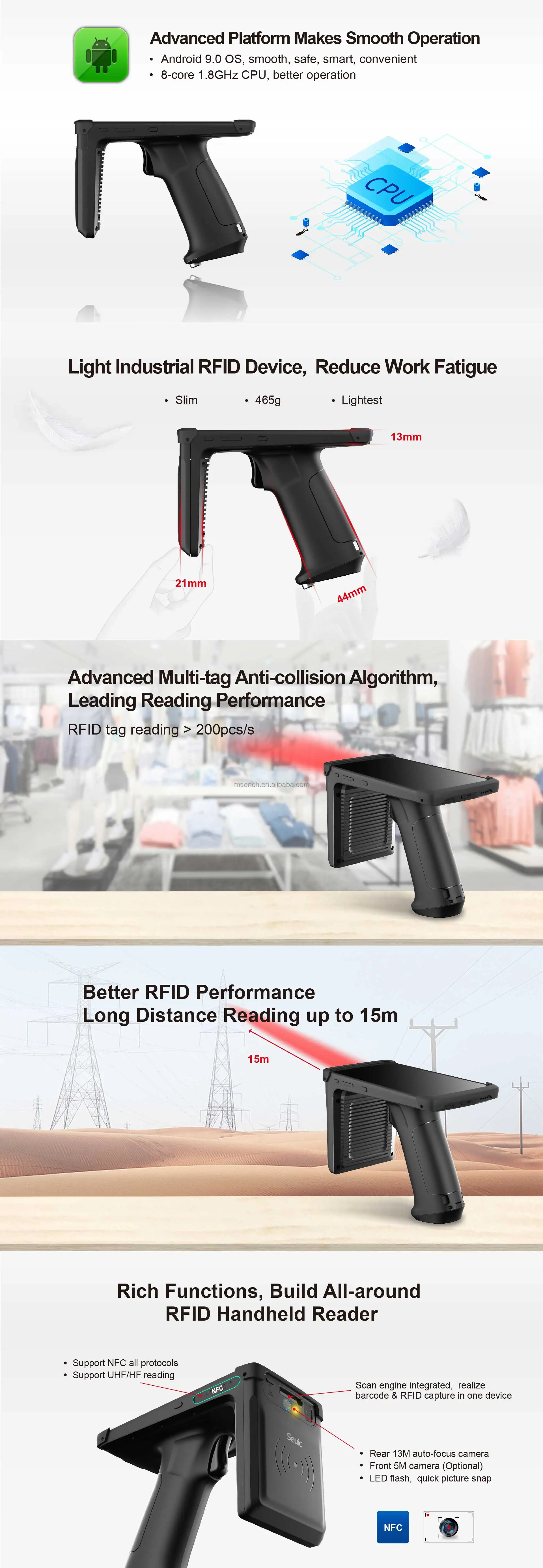 AUTOID UTouch-это промышленный RFID терминал для захвата данных. Он поддерживает распознавание rfid-меток и традиционный штрих-код, такой как сканирование 1D и 2D. Несмотря на это, AUTOID UTouch разработан с весом всего 465 г, что проще для пользователя держать и управлять им в течение длительного времени. Благодаря комбинации RFID модулей и сканеров AUTOID UTouch может широко использоваться в таких отраслях, как розничная торговля, складирование, управление общественными активами и т. д., чтобы помочь клиентам оптимизировать свой бизнес и управление активами.