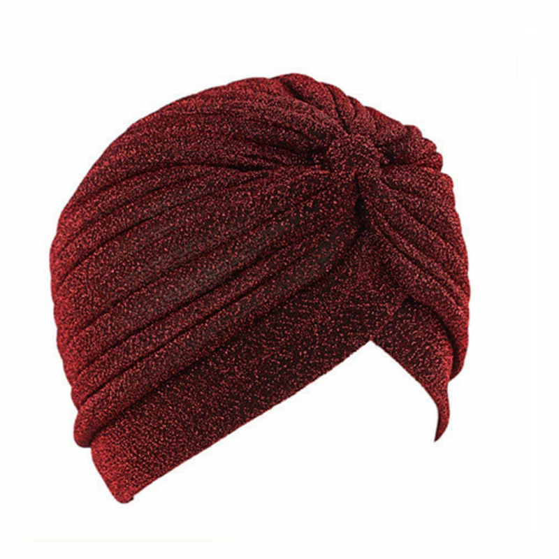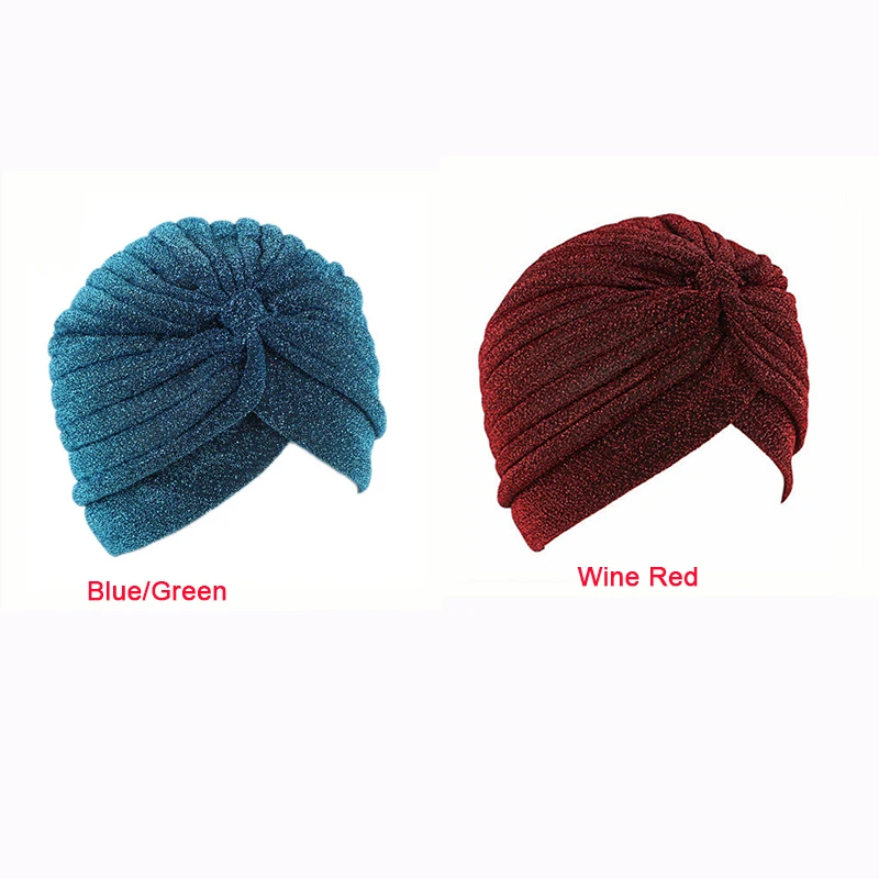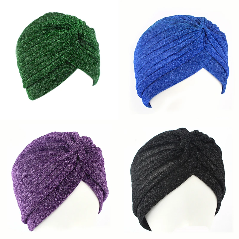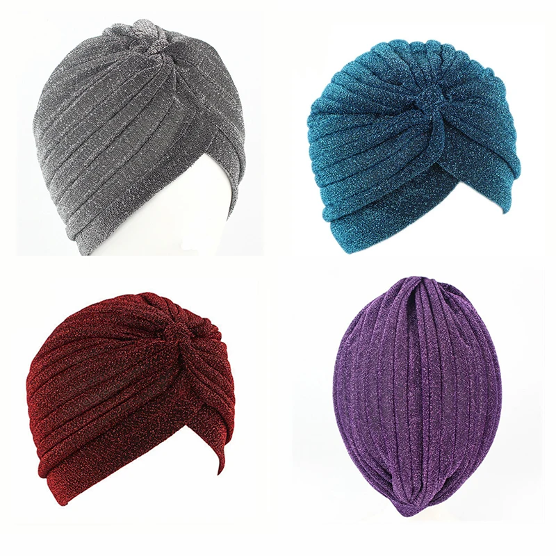 Женские блестящие повязки на голову с серебряным золотым узлом, шапка-тюрбан, осенне-зимний теплый головной убор, Повседневная Уличная одежда, женские мусульманские индийские головные уборы