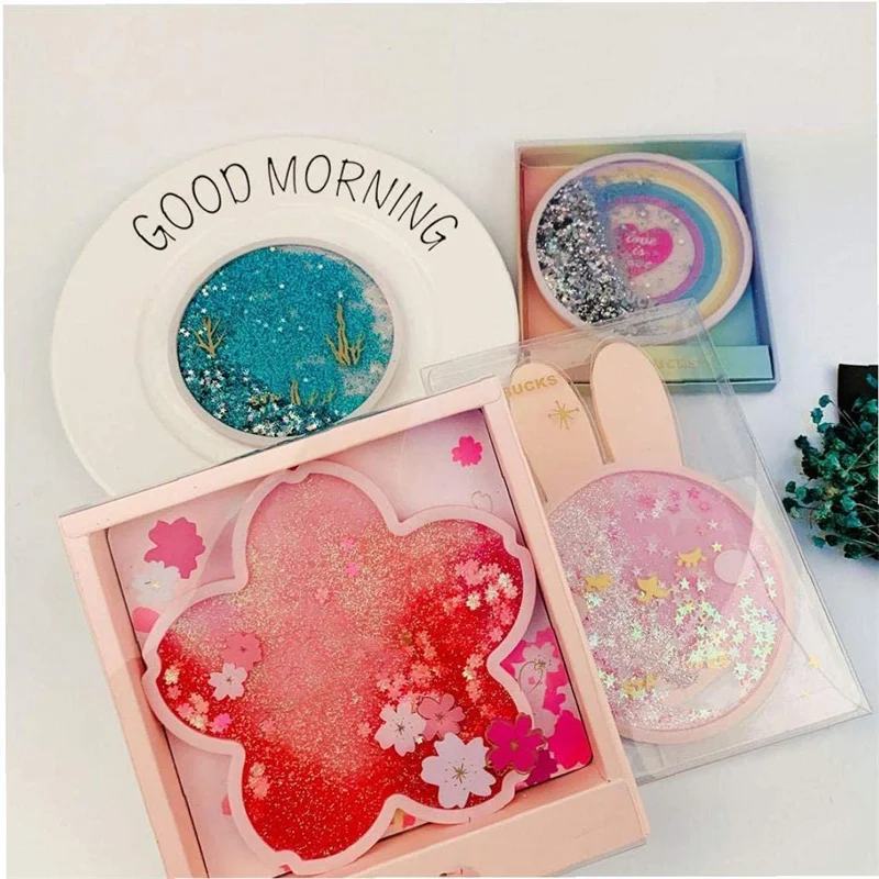 1. Наши горки для напитков имеют Блестящий зыбучий песок в них. Вы можете встряхнуть его, и зыбучий песок будет течь медленно и светиться в них