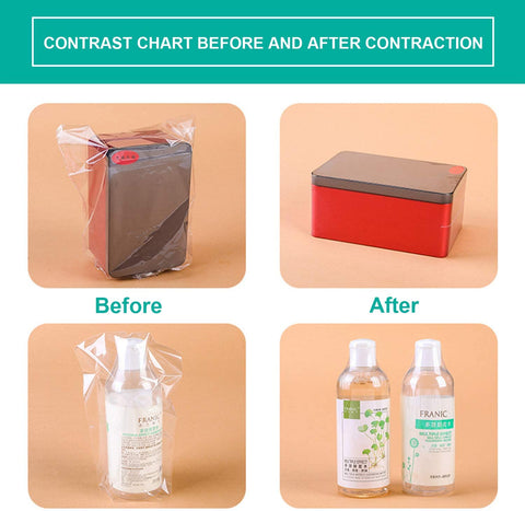 【Хорошее качество 】прозрачные термоусадочные пакеты изготовлены из ПВХ, кристально чистого, безопасного, нетоксичного, безвкусного, экологически чистого и здорового, эффект сжатия легко достигается. Двухслойная толщина и не рвется, высокое качество для высокой производительности.