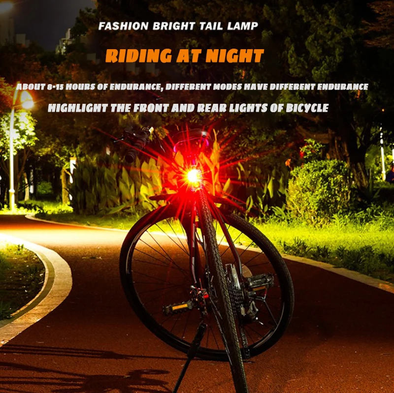 Highlight the front and rear lights of the bicycle, enjoy safe night riding