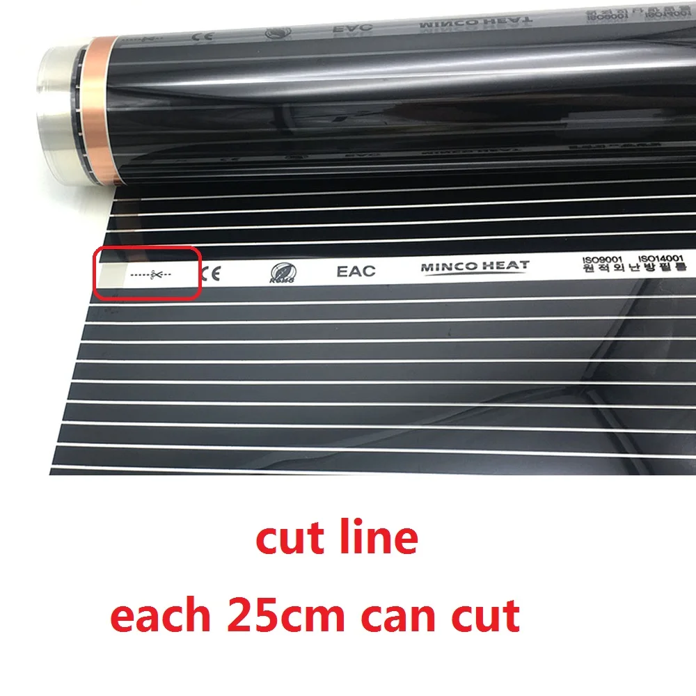 MINCO HEAT AC220V инфракрасный, проходящий под полом нагревательная пленка 220 Вт/м2 теплый коврик Электрический нагреватель для домашнего нагревательного элемента
