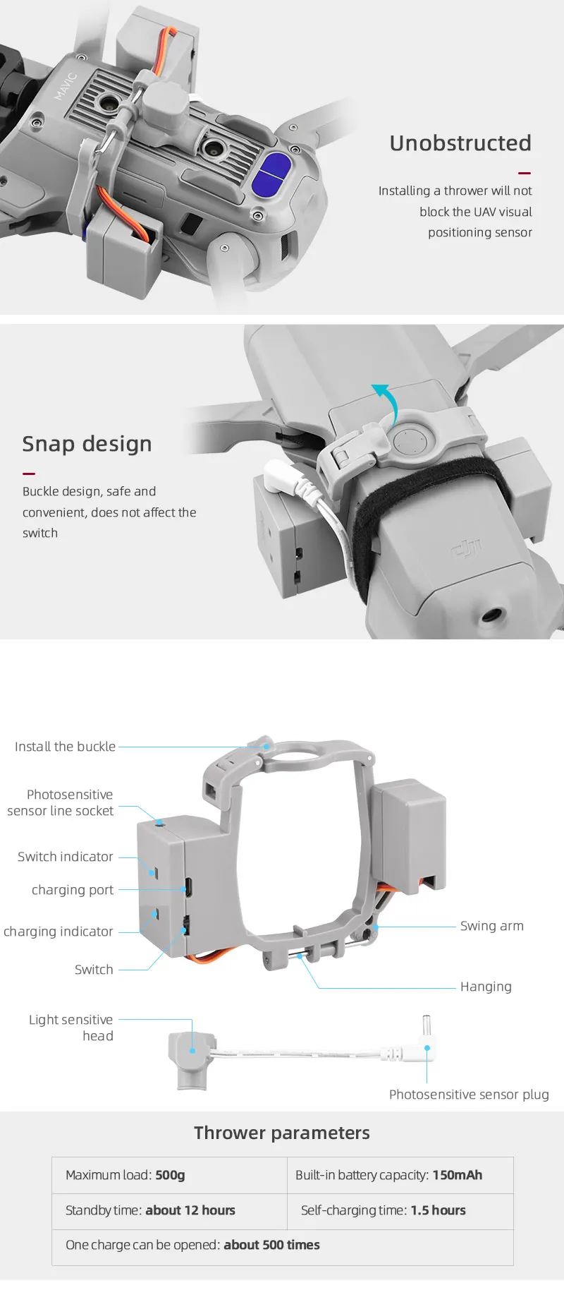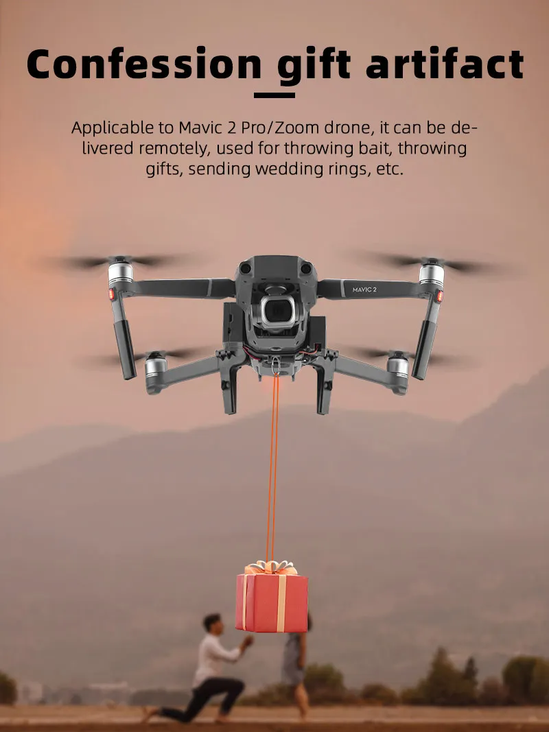 1. Подходит для мини-дронов 2/MINI SE/MAVIC, которые могут быть доставлены удаленно для рекламы, метания приманки, бросания подарков, доставки еды, доставки свадебных колец и т. д.