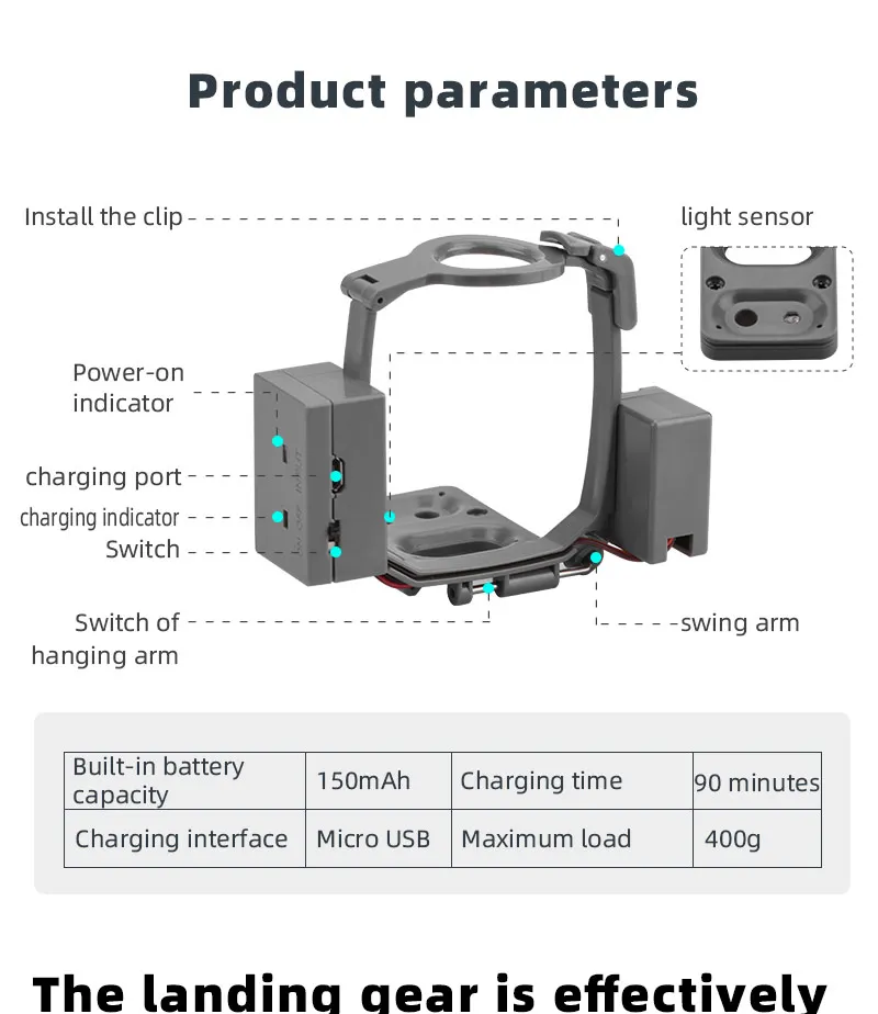 4. Легкий и безопасный, он не увеличит нагрузку на Дрон и не повредит Дрон, и прост в установке и разборке,