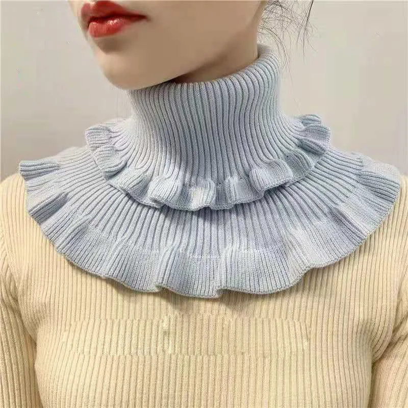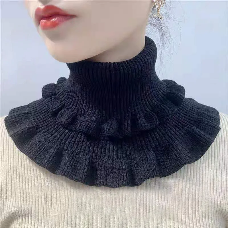 Поддельный Воротник, защита шеи, осень/зима, Женская высокая горловина, более универсальный воротник, чистый цвет, высокая Растяжка, вязанный нагрудник с оборками A45