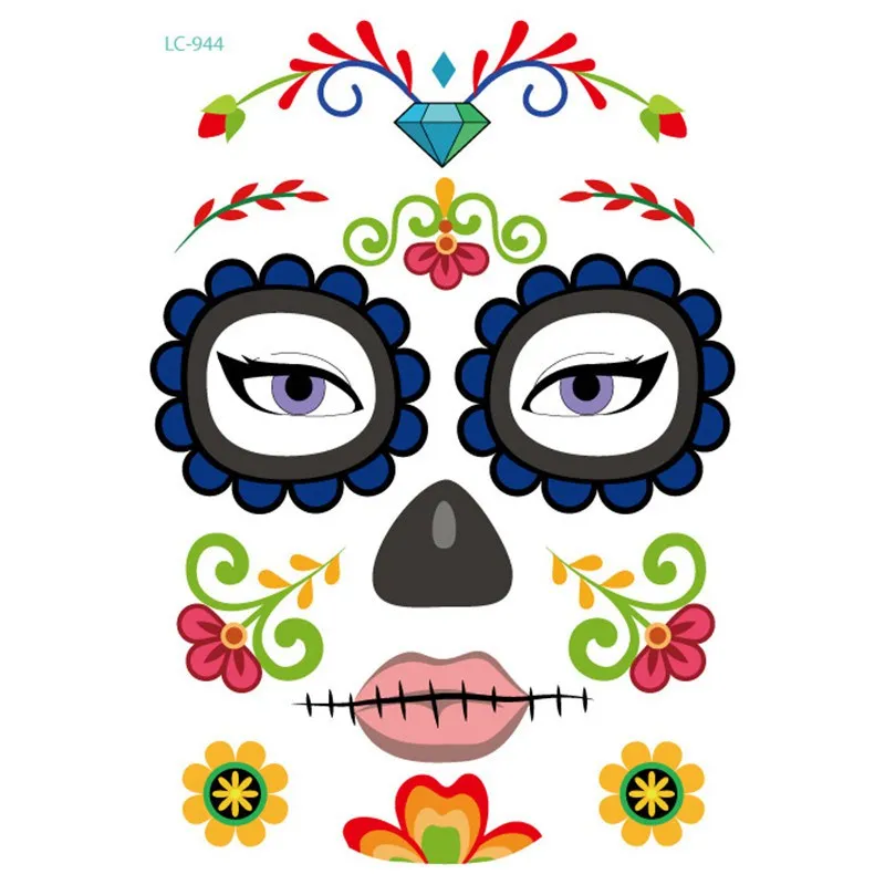 Декорации для Хэллоуина Маска Водонепроницаемая Временная тату наклейка мексиканский день сахара череп маска макияж вечерние 1 шт 1 шт. Декорации для Хэллоуина Маска Водонепроницаемая Временная тату наклейка мексиканский день сахара череп маска макияж Вечерние