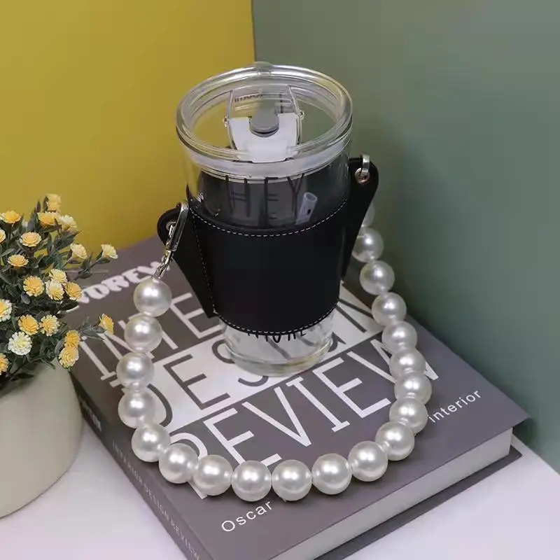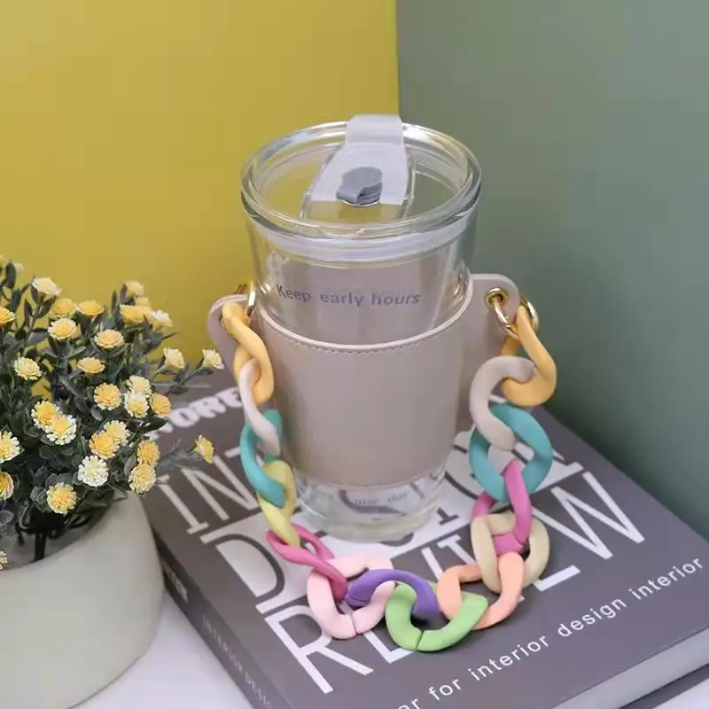 1PC PU Leather Water Bottle Cover Hand-Held Holder Detachable Chain Portable Coffee Cup Outer Packaging Bag (Without Water Cup)
