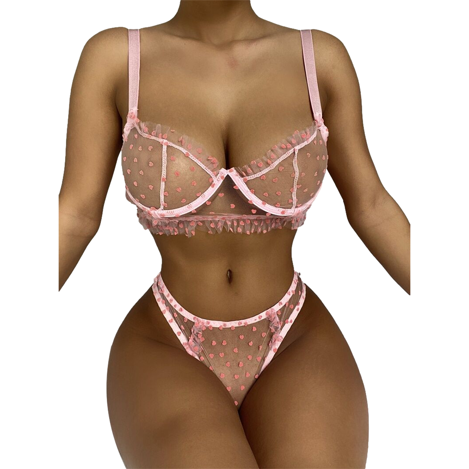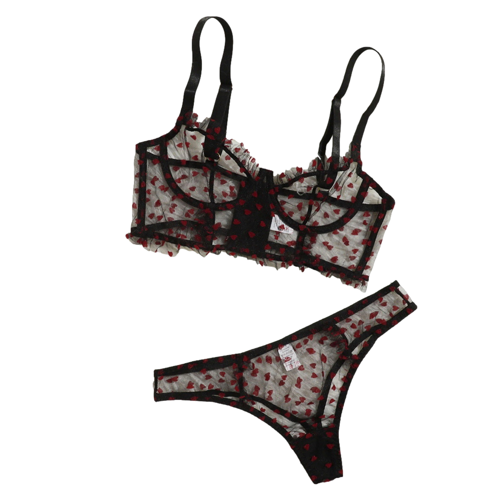 Женский комплект нижнего белья, прозрачный бюстгальтер с сердечками + трусики
