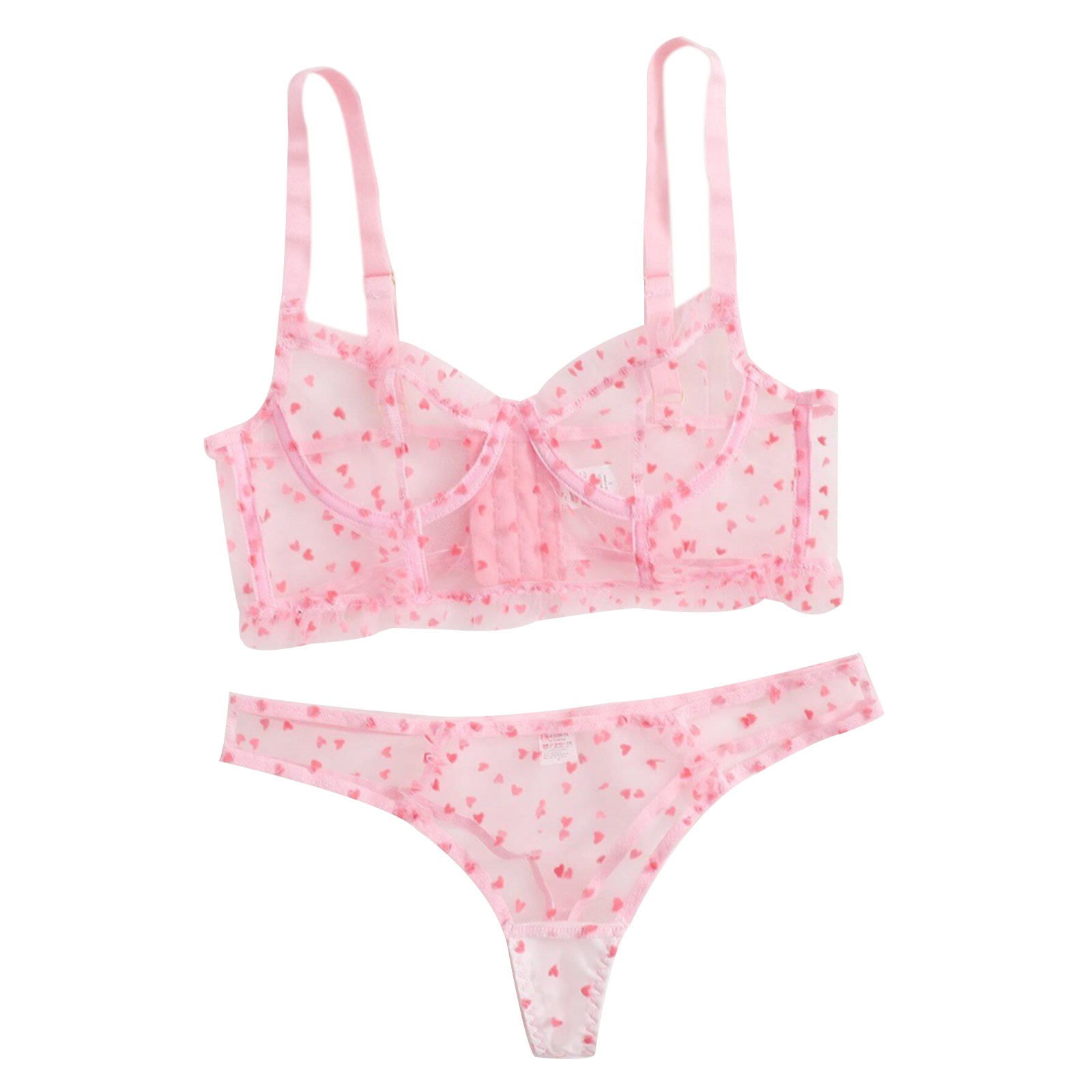 Прозрачный бюстгальтер и трусики с сердечками, простой и сексуальный.