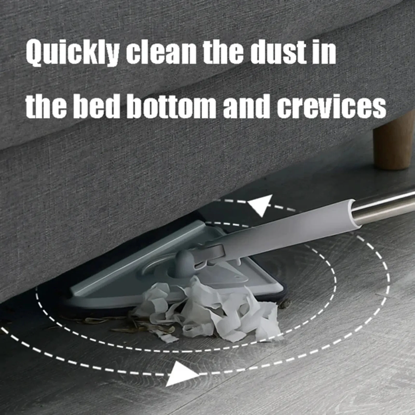 2. Гибкий поворот на 360 °: швабра имеет вращение на 360 ° и практичный дизайн на 180 °, он используется для очистки, не оставляя мертвых углов, эта Швабра отлично подходит для журнального столика, дивана и кровати, стены мертвых углов, лестницы и т. Д.