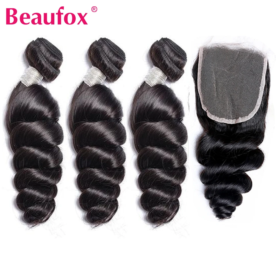 Beaufox свободные волнистые пучки с закрытием, человеческие волосы Remy 3 4 пряди с закрытием, бразильские пучки волос с закрытием 30 дюймов