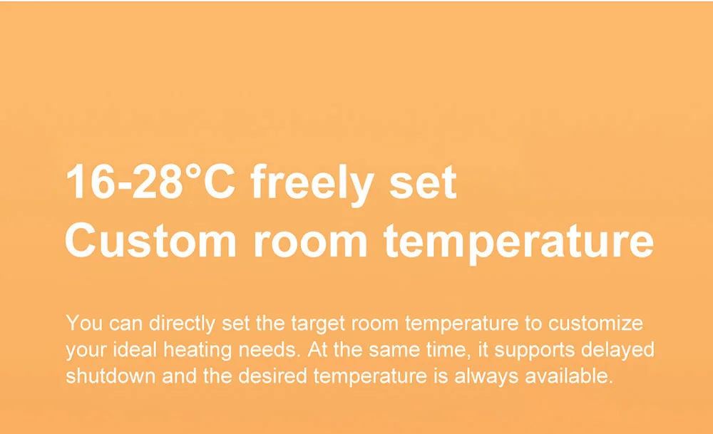 Вы можете непосредственно установить целевую температуру комнаты, чтобы настроить ваши идеальные потребности в нагреве. В то же время, он поддерживает задержку выключения и желаемая температура всегда доступна.