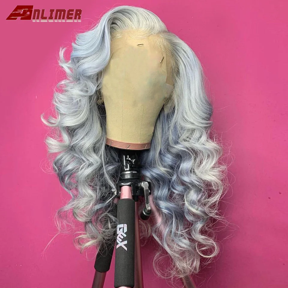Парики из натуральных волос на фронте 13x 6, парики из натуральных волос серого цвета, 180%