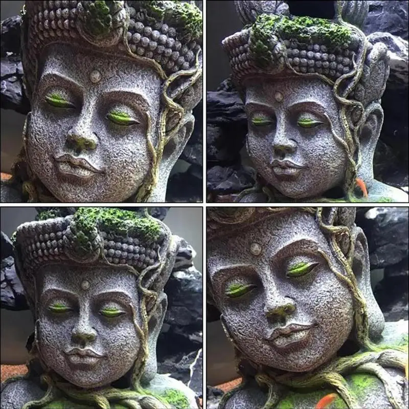 2. Украшение головы Будды изготовлено из высококачественной смолы для защиты окружающей среды, Нетоксично и безопасно, имеют отличные характеристики под водой. Продукт имеет вкус скипидара. Пожалуйста, Вымойте и высушите перед использованием. Вкус исчезнет со временем, подходит для всех террариумов, аквариумов, пресной и соленой воды. Это не наносит вреда вашим водным животным и не влияет на качество воды.
