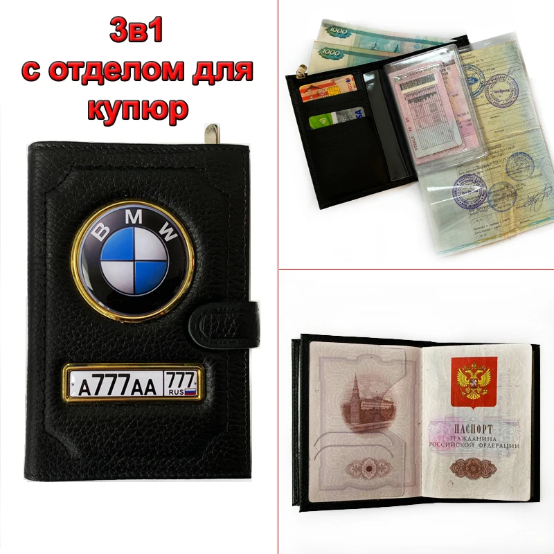 6 отделов для документов: Водительское удостоверение (1 отдел), Свидетельство о регистрации (4 отдела), Страховка / ПТС (1 отдел)8 карманов для карт.
