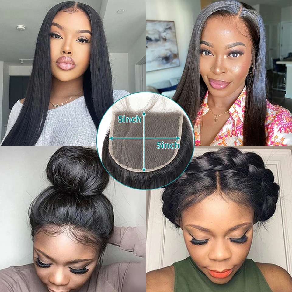 Прямые волосы Luduna 10 А пучки с застежкой бразильские человеческие 4 пряди Remy