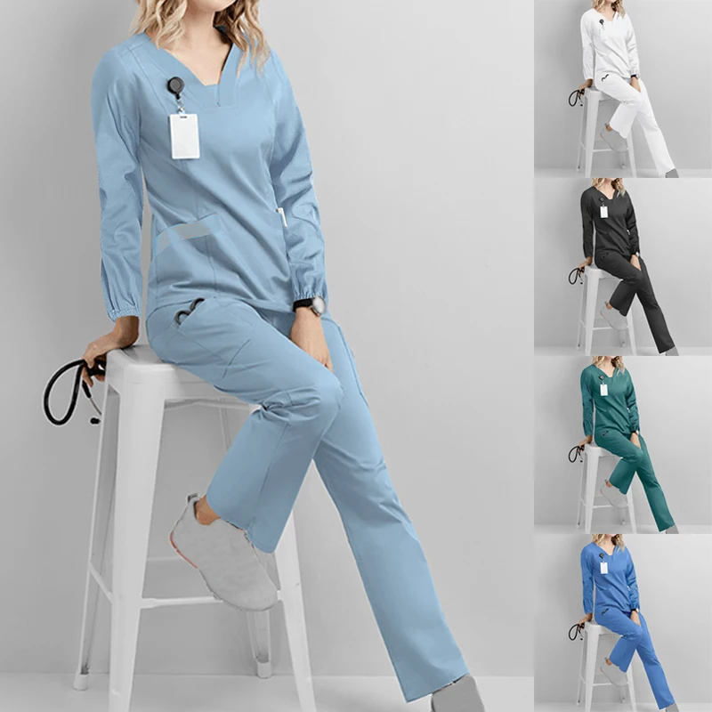 Набор, Униформа, Женская рабочая одежда, одежда для салонов красоты, для работы, с длинным рукавом, для ухода, рубашка, унисекс, униформа для медсестры, приталенная, для женщин, медицинская